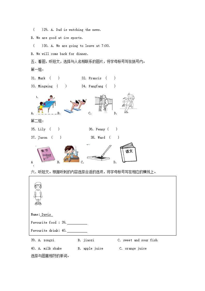 【文档预览】 无忧考网整理发布2022-2023学年北京丰台区五年级上册英语期末试卷及答案(Word版),前五页预览如下: