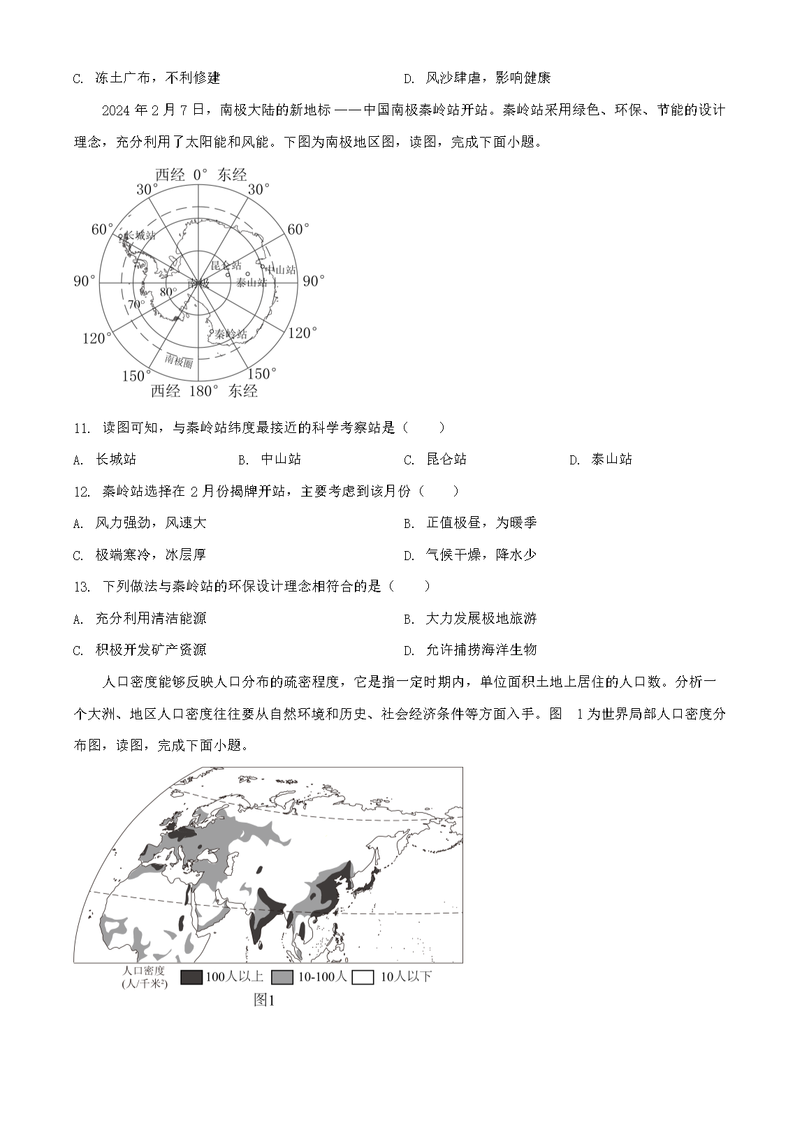 【文档名称】 2024年青海海北中考地理试题及答案(Word版).doc