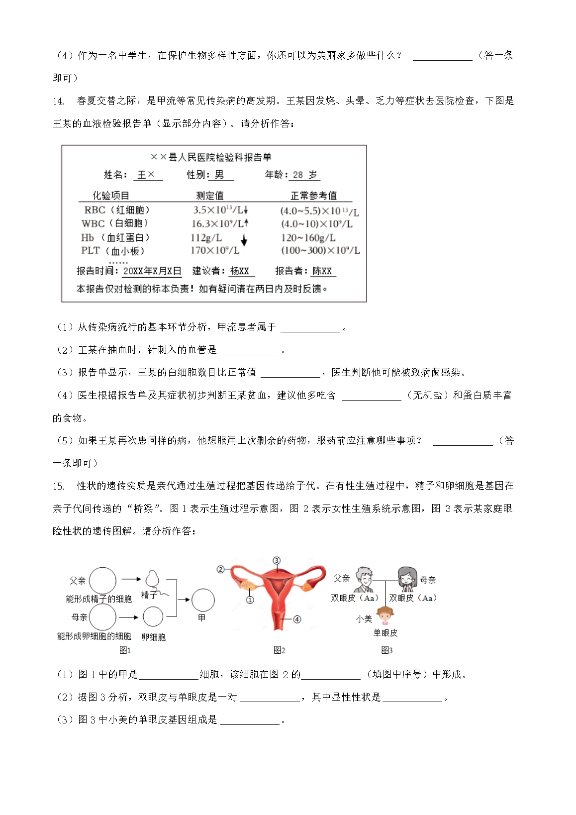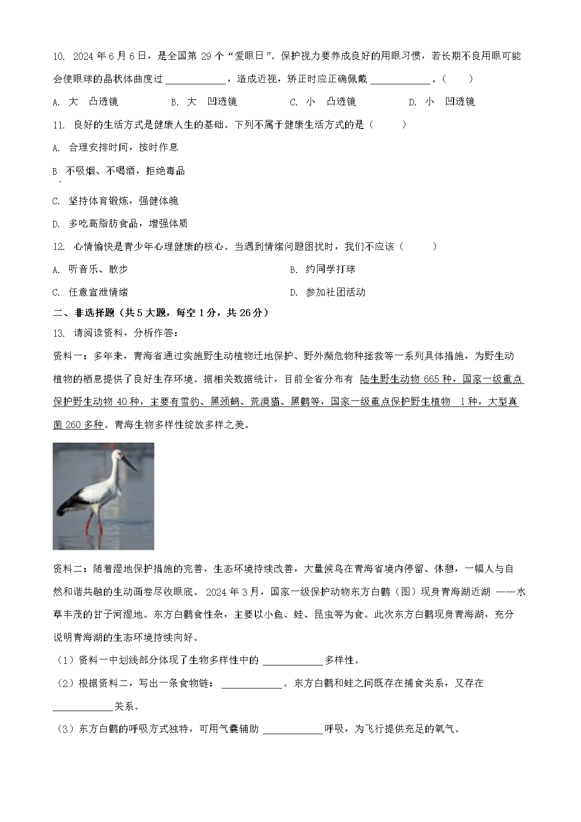 【文档名称】 2024年青海黄南中考生物试题及答案(Word版).doc