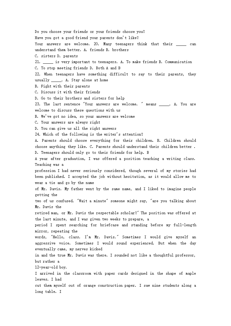 【文档名称】 2021年贵州特岗教师招聘考试英语真题及答案(Word版).doc