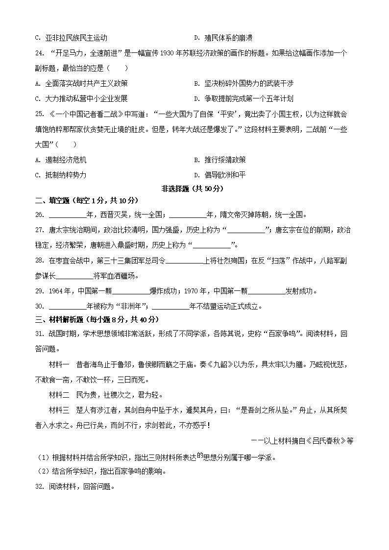 【文档预览】 无忧考网整理发布2024年山东聊城中考历史试题及答案(Word版),前五页预览如下: