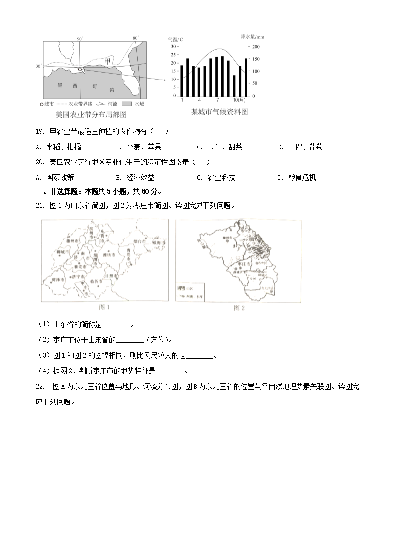 【文档名称】 2024年山东枣庄中考地理试题及答案(Word版).doc