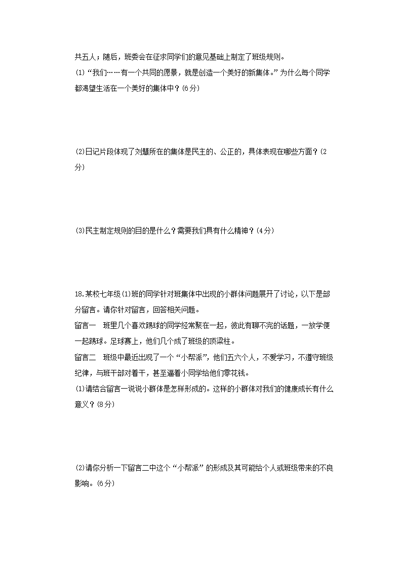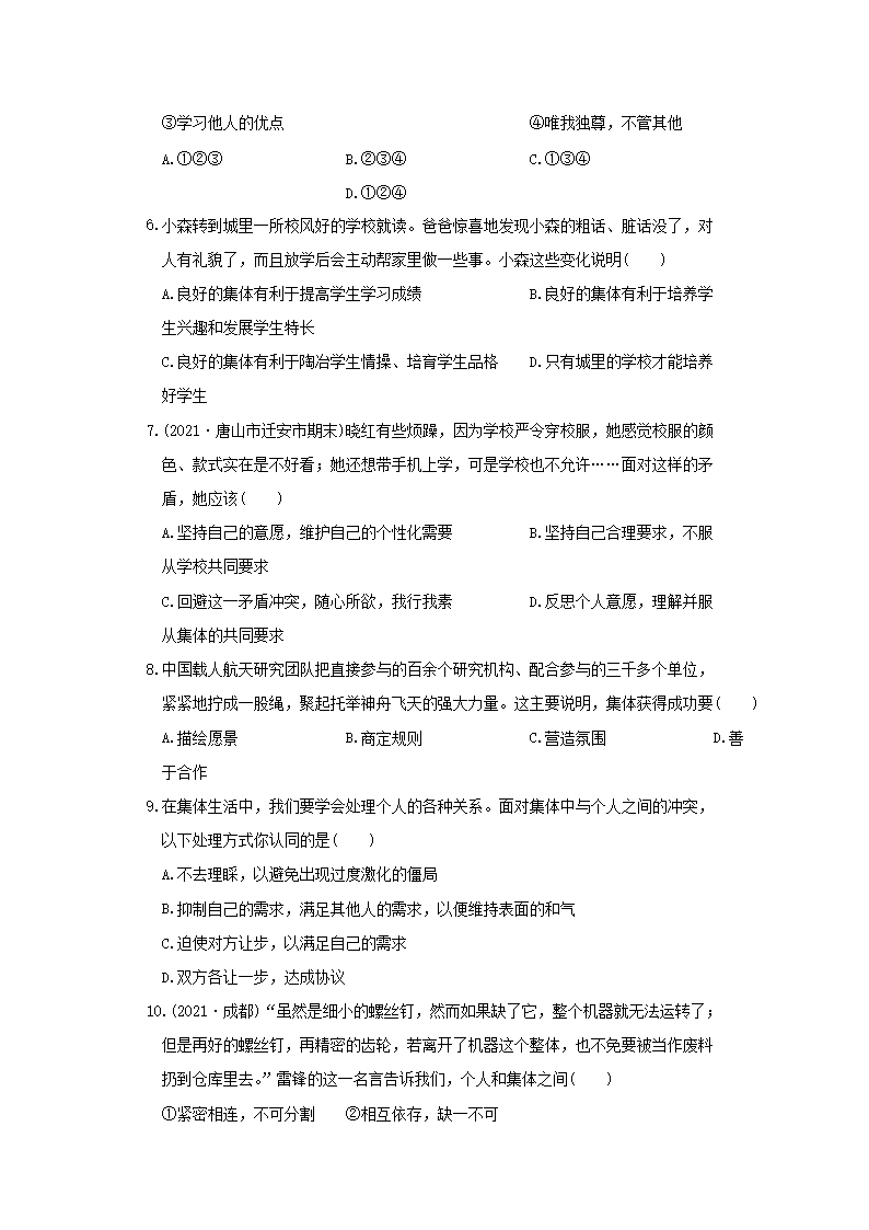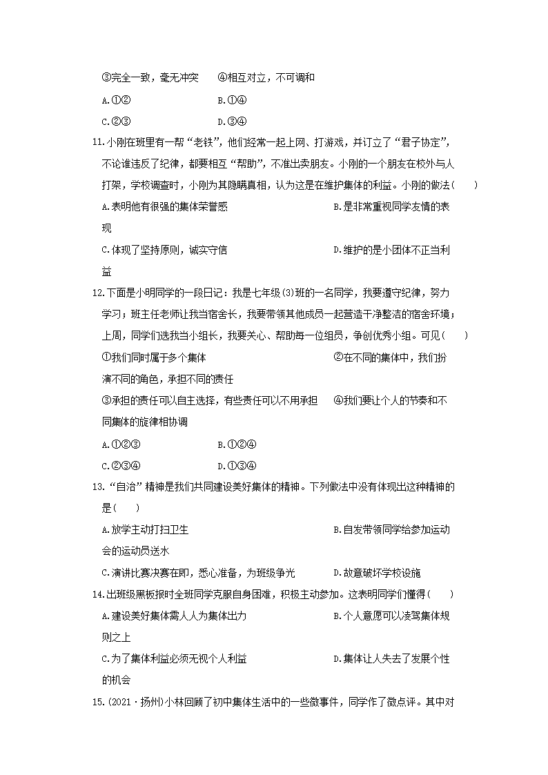 【文档预览】 无忧考网整理发布2021-2022学年七年级下册道德与法治第三单元试卷及答案部A卷(Word版),前五页预览如下: