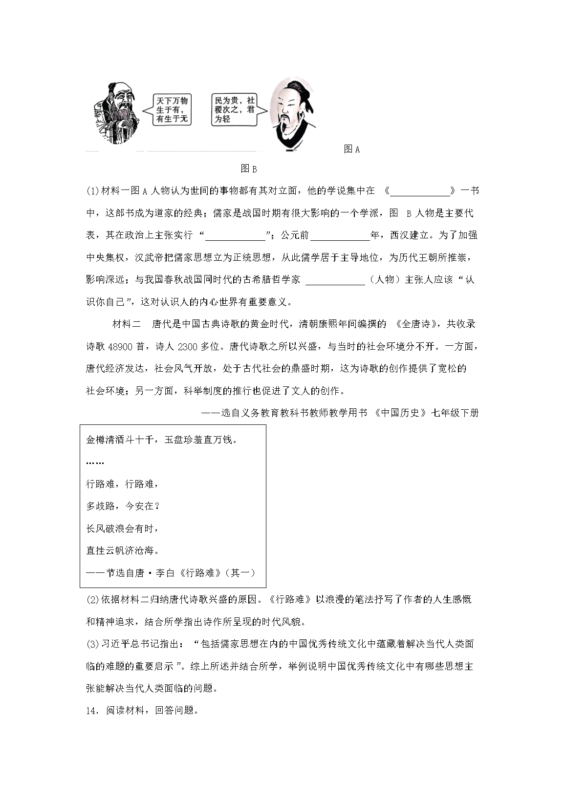 【文档名称】 2024年陕西汉中中考历史试题及答案(Word版).doc