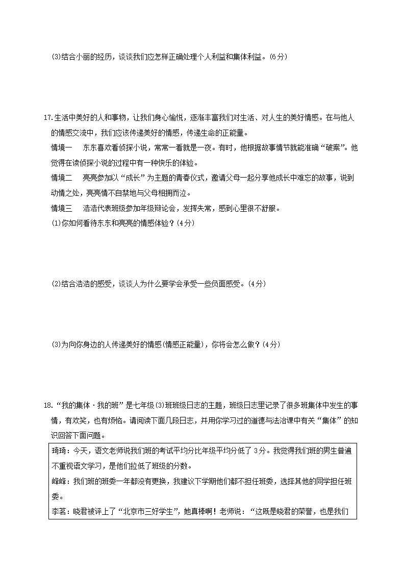 【文档名称】 2022-2023学年七年级下册道德与法治期末试卷及答案部编版B卷(Word版).doc