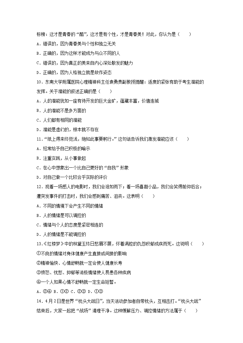 【文档预览】 无忧考网整理发布2023-2024学年河北秦皇岛台营学区七年级上册道德与法治期末试卷及答案(Word版),前五页预览如下: