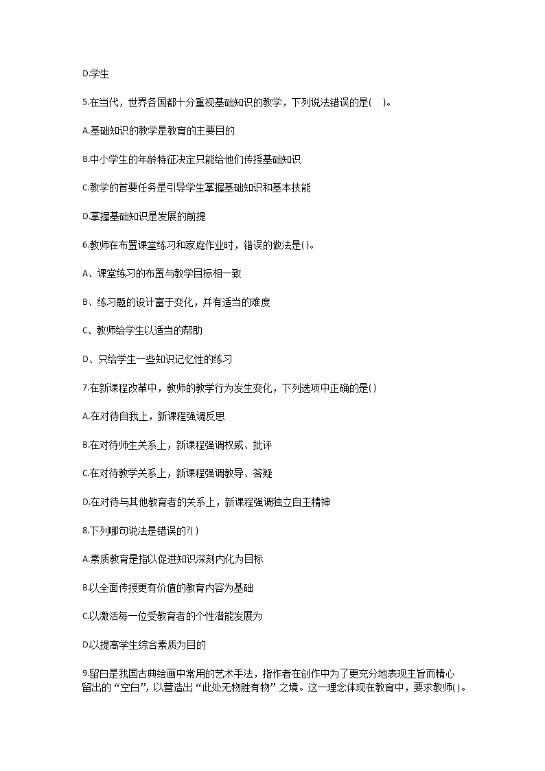 【文档名称】 2025年四川自贡教师招聘考试模拟试题及答案(Word版).doc