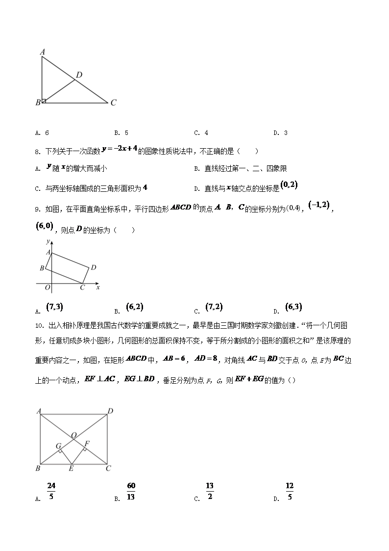 【文档名称】 2023-2024学年广东省广州市海珠区八年级下学期期末数学试题及答案(Word版).doc