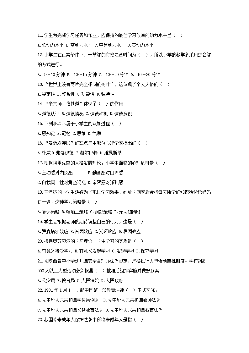 【文档名称】 2019年陕西特岗教师招聘考试小学教育综合知识真题及答案(Word版).doc