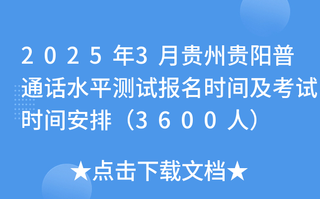 【#普通话考试# #2025年3月贵州贵阳普通话水平测试报名时间及考试时间安排(3600人)#】©无忧考网从贵州省普通话培训测试中心获悉,2025年3月贵州贵阳普通话水平测试报名时间及考试时间安排(3600人)已公布,具体详情如下: