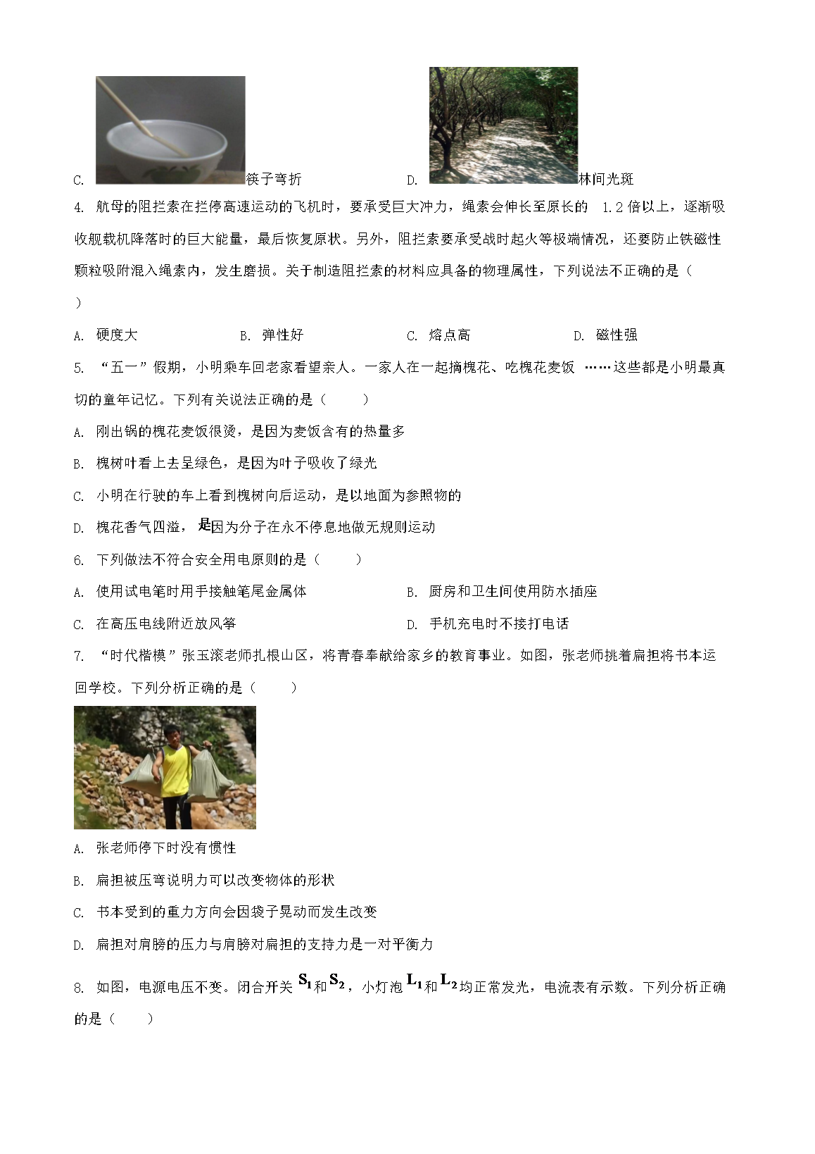 【文档名称】 2024年陕西咸阳中考物理试题及答案(Word版).doc