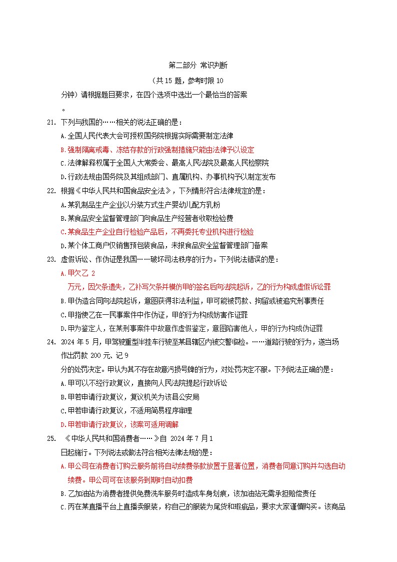 【文档预览】 无忧考网整理发布2025年天津国家公务员行测考试真题及答案-行政执法卷(Word版),前五页预览如下: