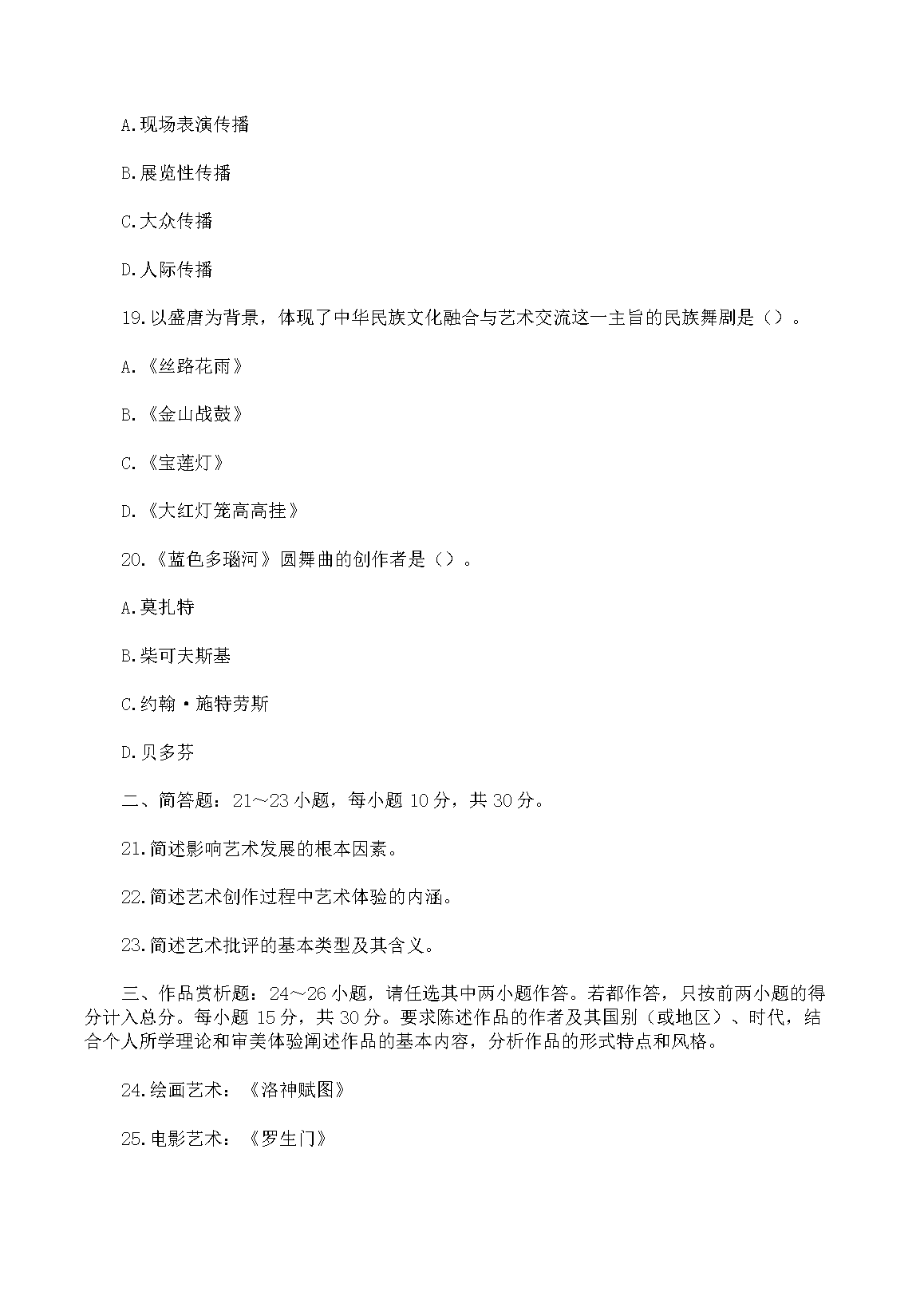 【文档名称】 2022年安徽成人高考专升本艺术概论真题及答案(Word版).doc