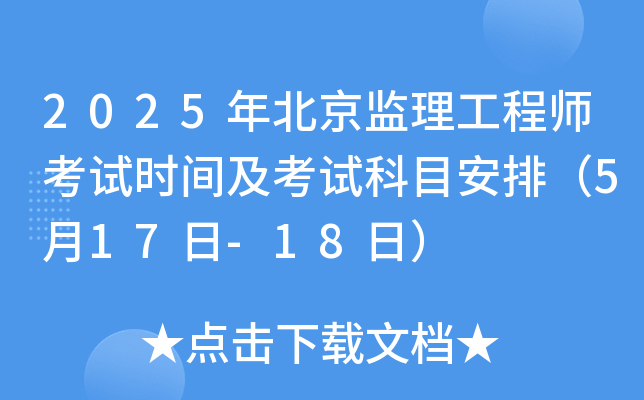 2025年北京监理工程师考试时间将于5月17日-18日举行!