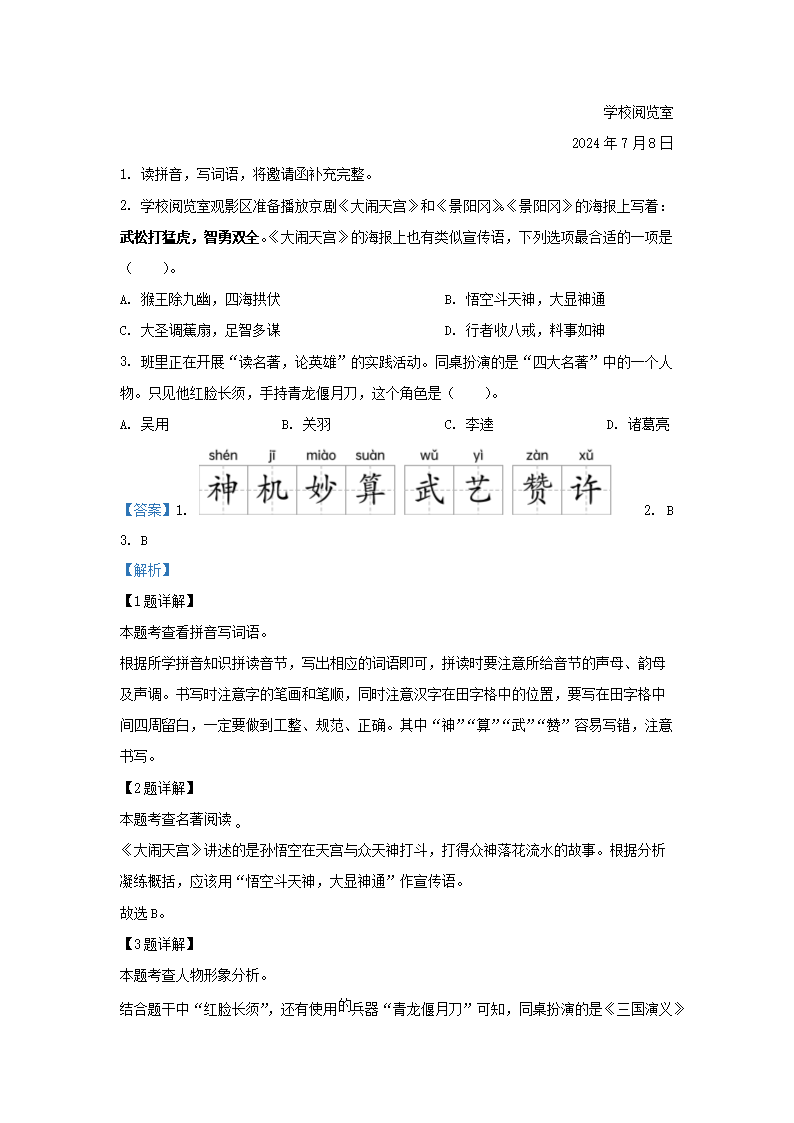 【文档预览】 无忧考网整理发布2023-2024学年广东广州越秀区五年级下册语文期末试卷及答案(Word版),前五页预览如下: