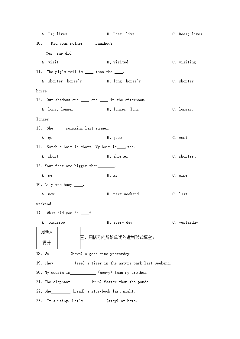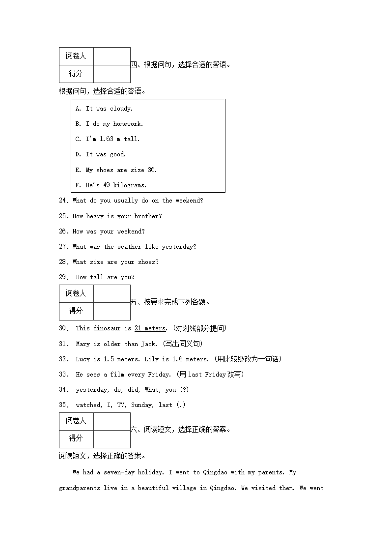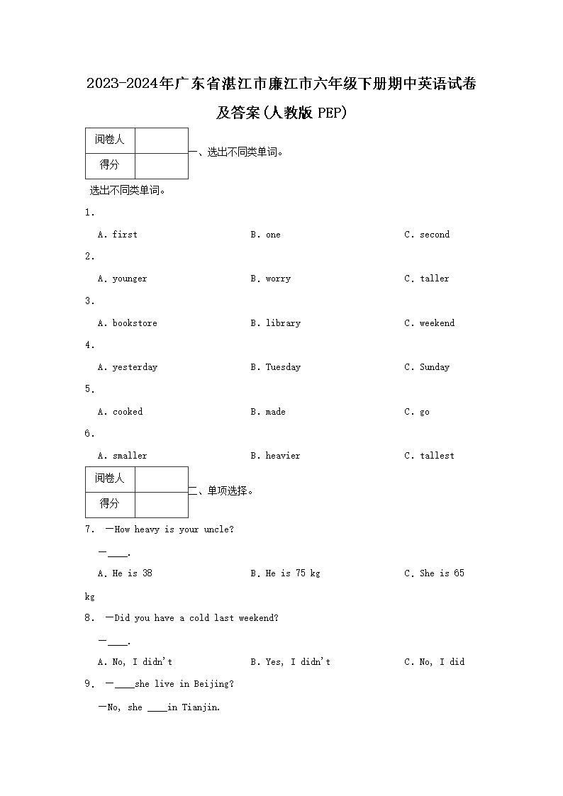 【文档预览】 无忧考网整理发布2023-2024年广东省湛江市廉江市六年级下册期中英语试卷及答案(人教版PEP)(Word版),前五页预览如下: