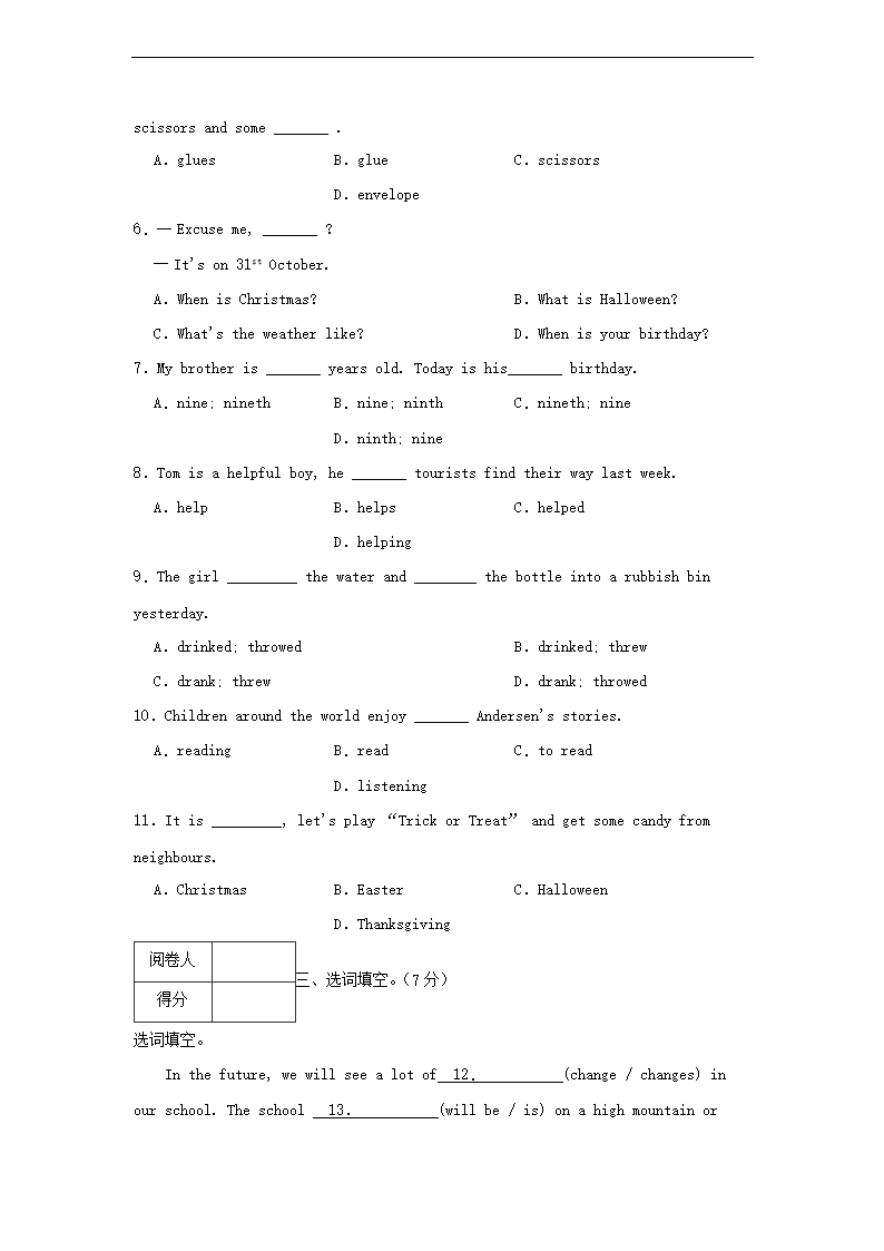 【文档预览】 无忧考网整理发布2019-2020年广东省深圳市盐田区六年级下册期末英语试题及答案(Word版),前五页预览如下: