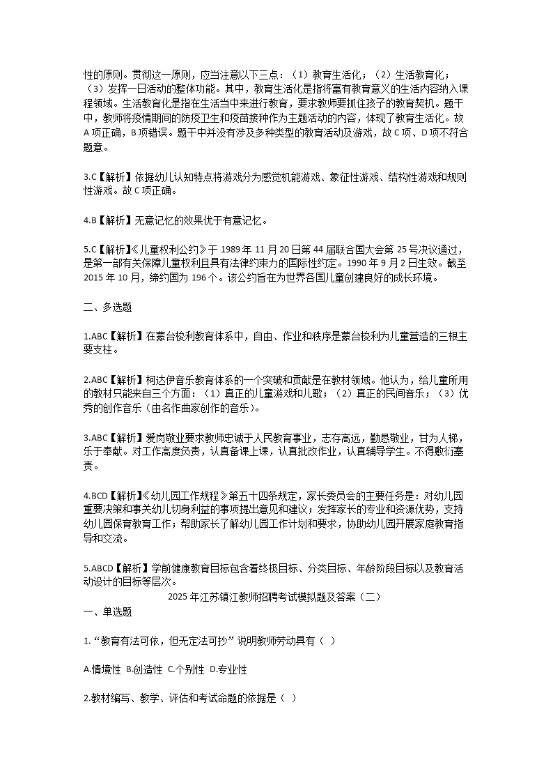 【文档名称】 2025年江苏镇江教师招聘考试模拟试题及答案(Word版).doc