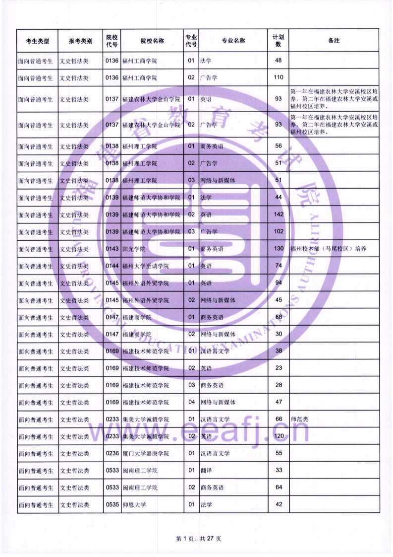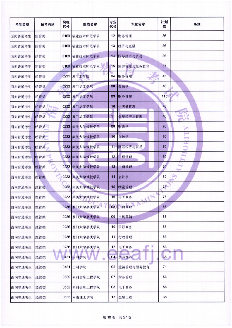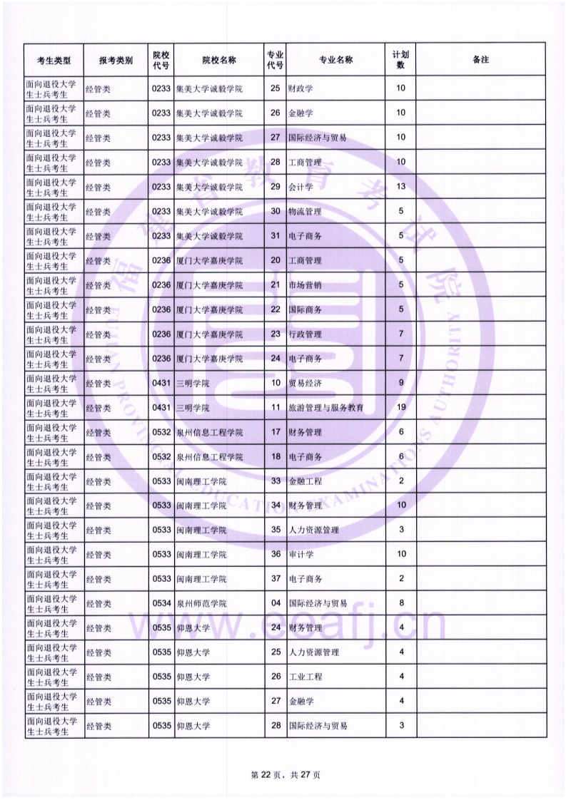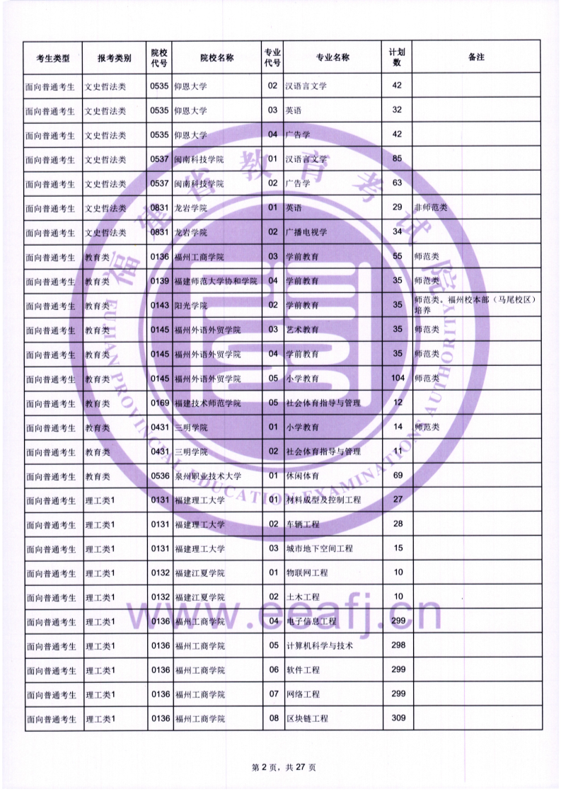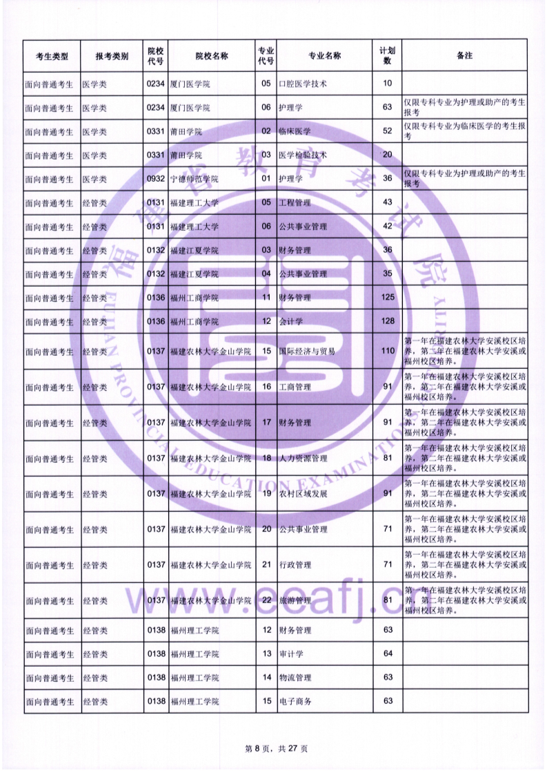 网从福建省教育考试院了解到,福建2025年普通高校专升本考试招生计划已公布,具体如下: