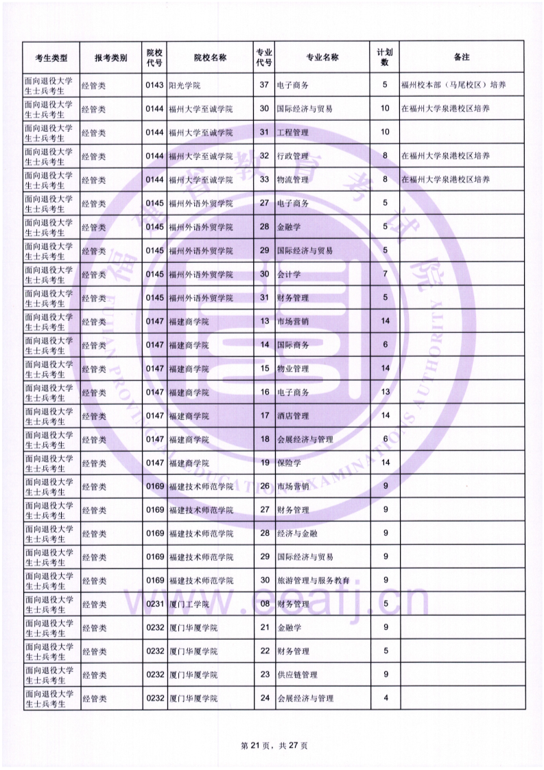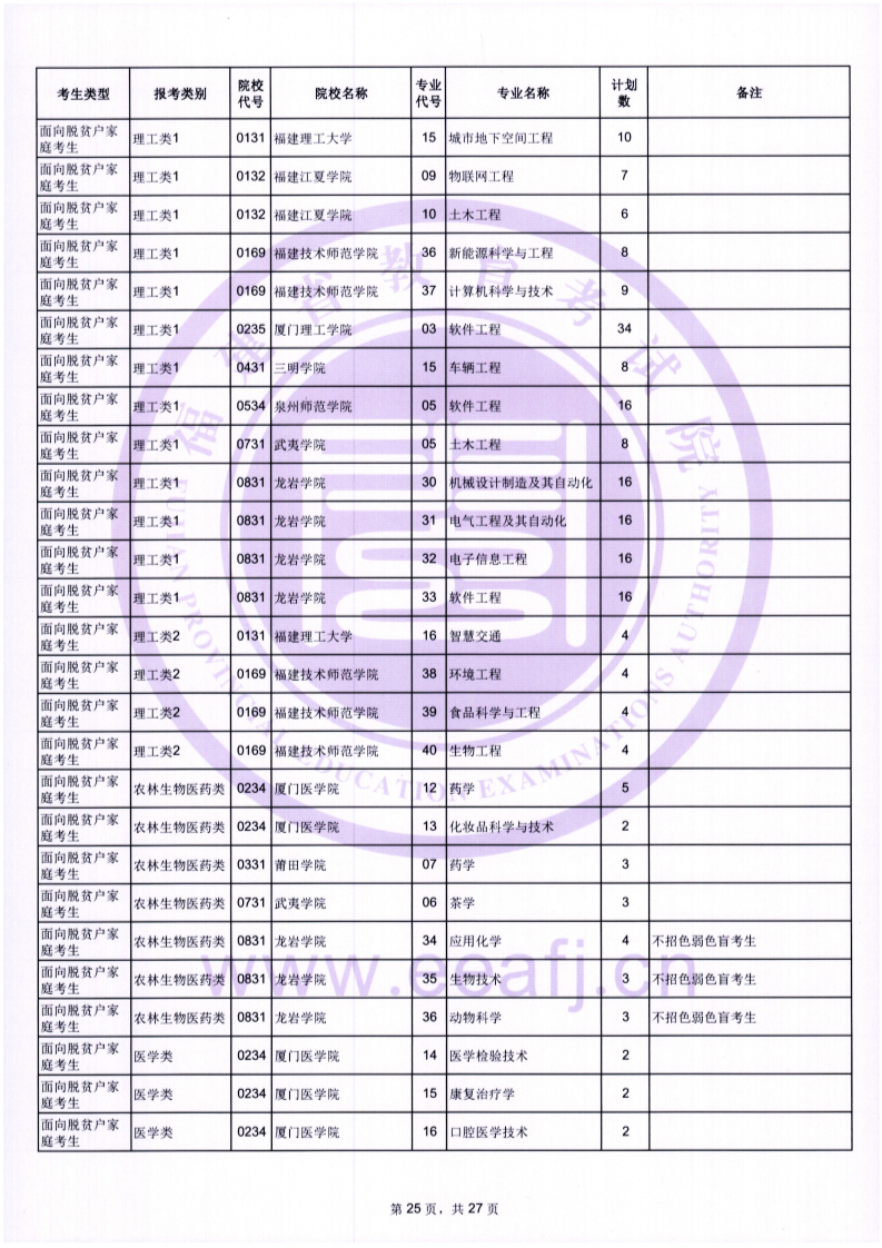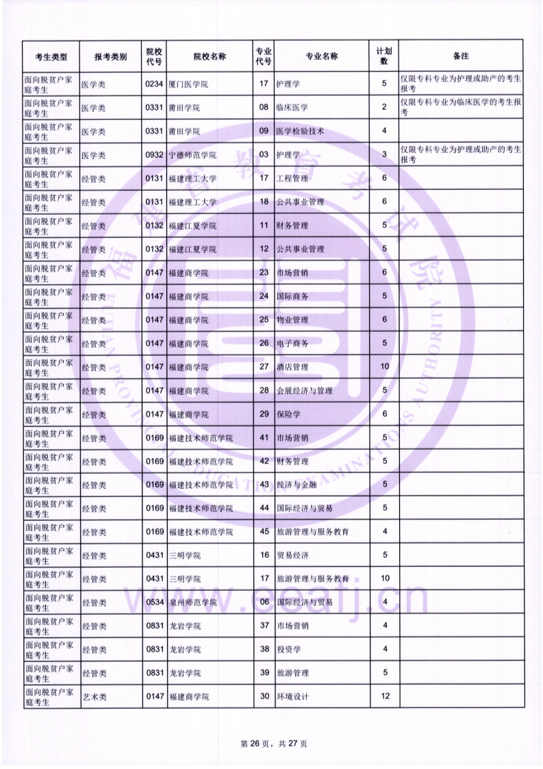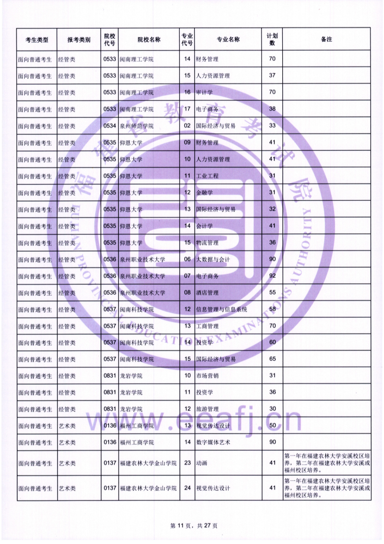 网从福建省教育考试院了解到,福建2025年普通高校专升本考试招生计划已公布,具体如下:
