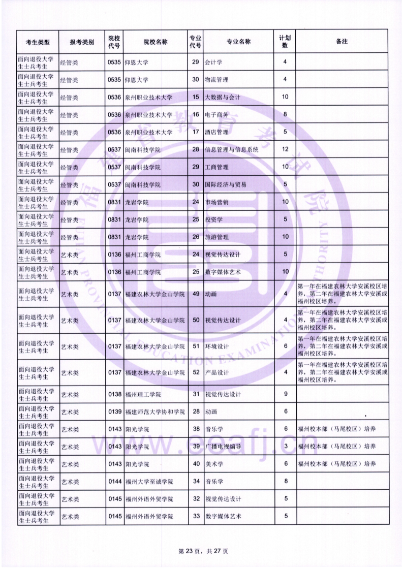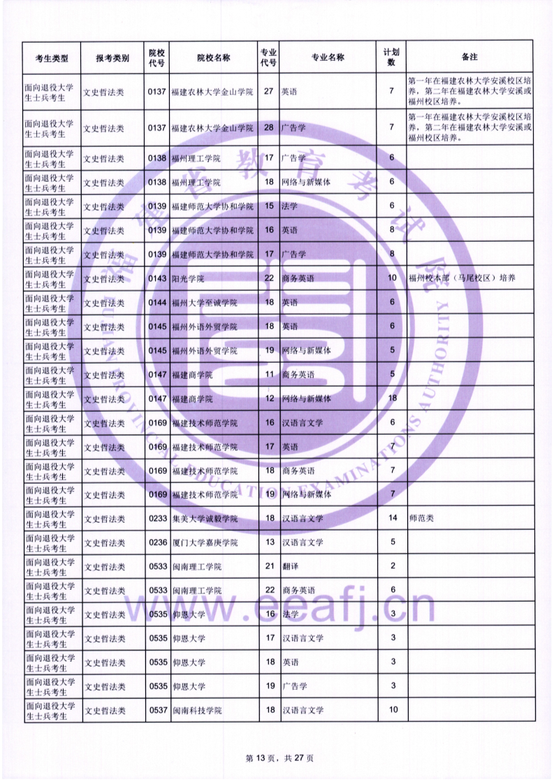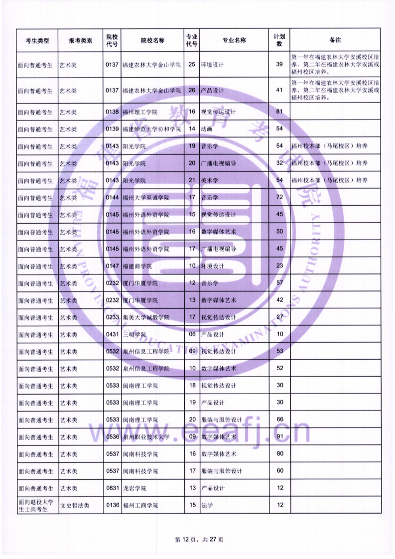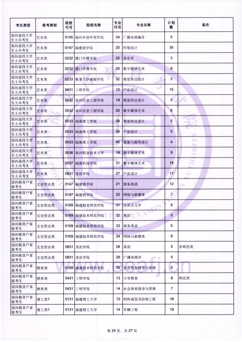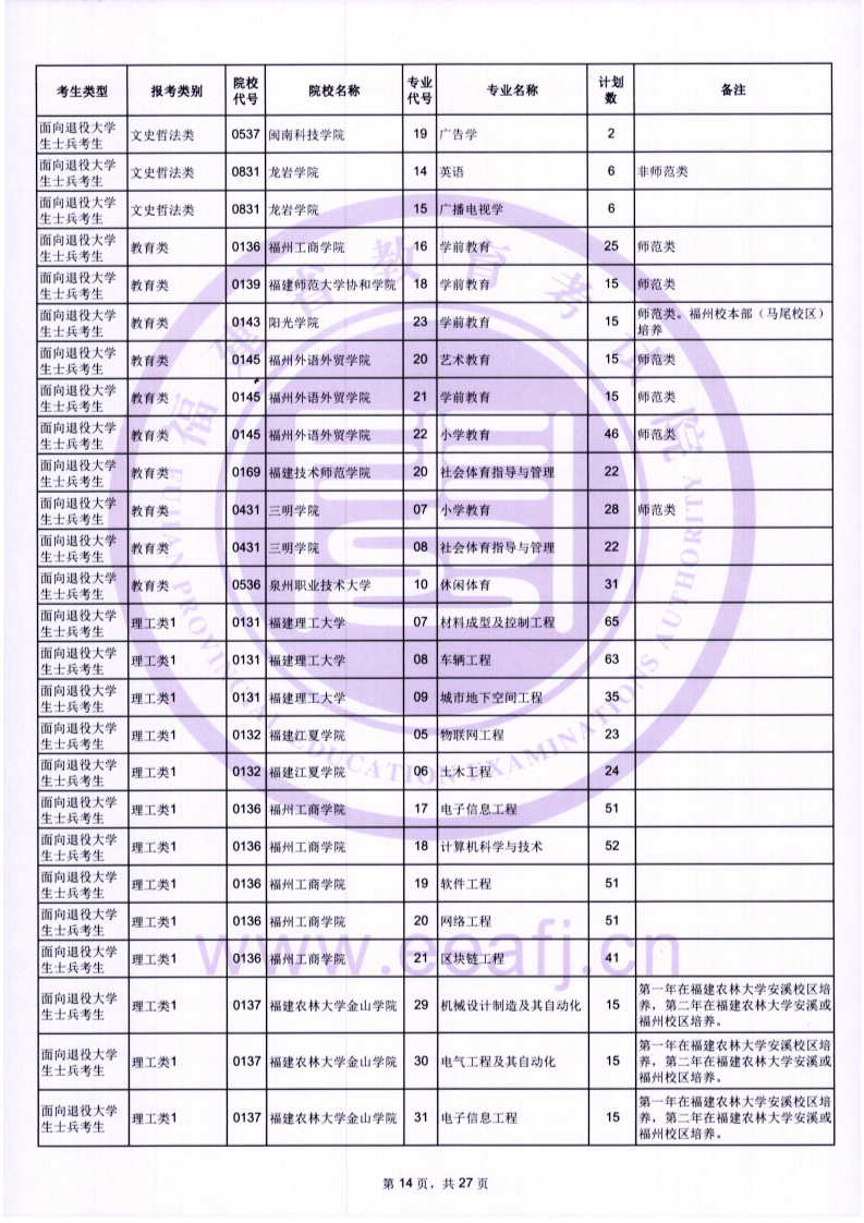 网从福建省教育考试院了解到,福建2025年普通高校专升本考试招生计划已公布,具体如下:
