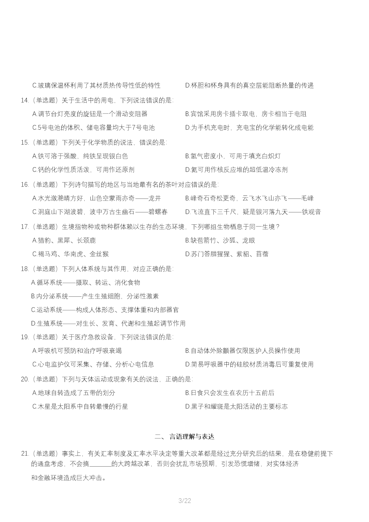 【文档预览】 无忧考网整理发布天津2024年11月2日事业单位联考A类职业能力倾向测验真题及答案(Word版),前五页预览如下:
