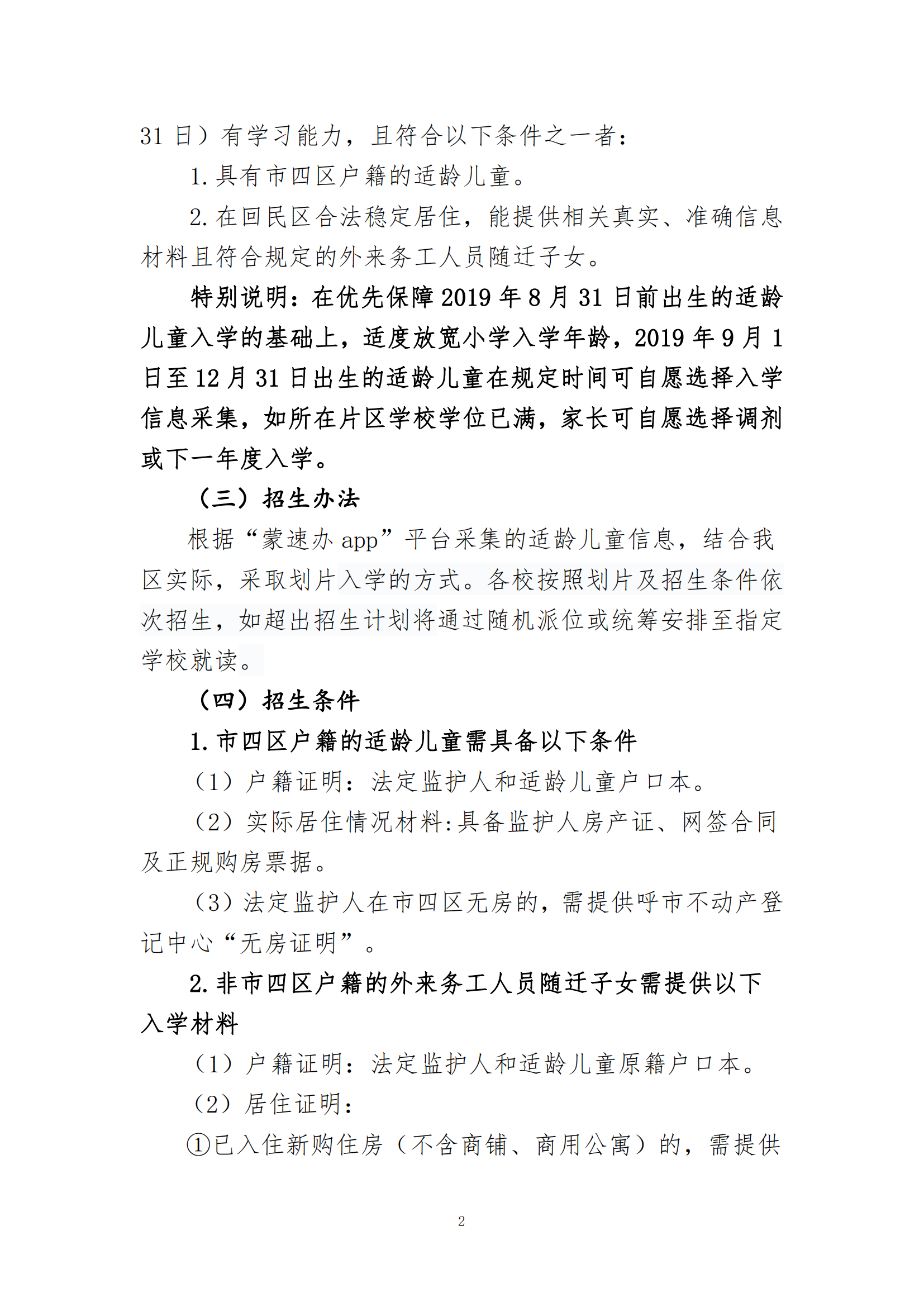 内蒙古呼和浩特市回民区2025年小学入学工作实施方