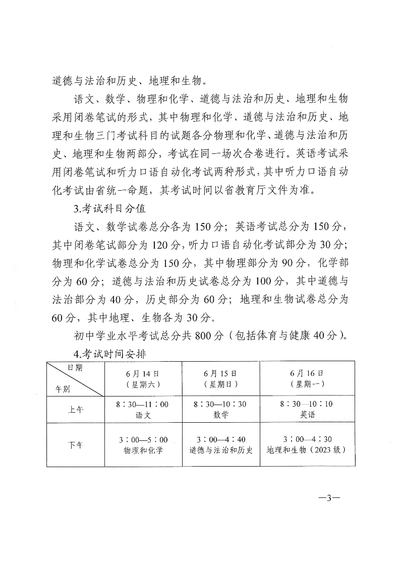 2025年江苏南通中考时间表、科目、总分及各科分值