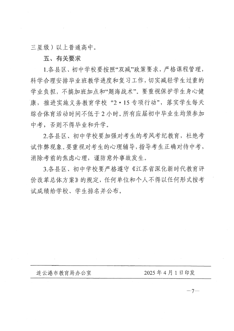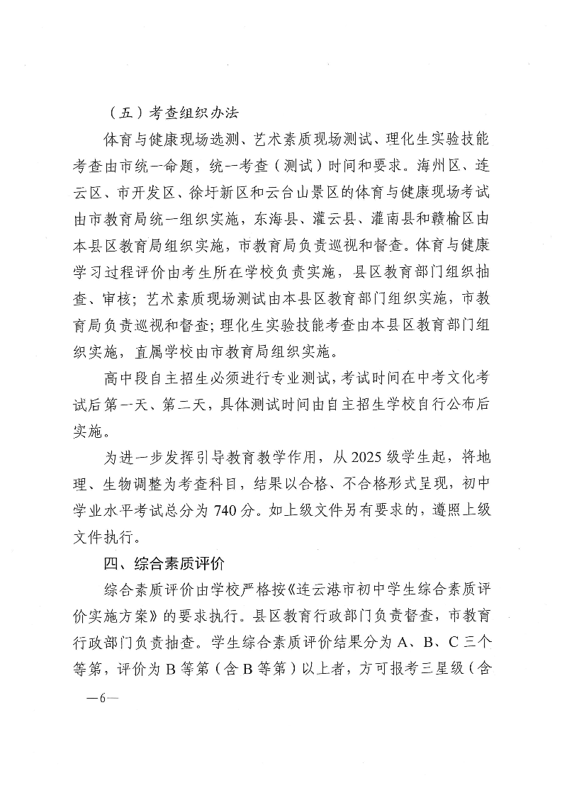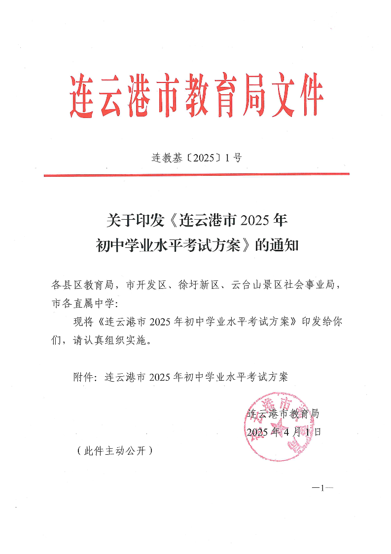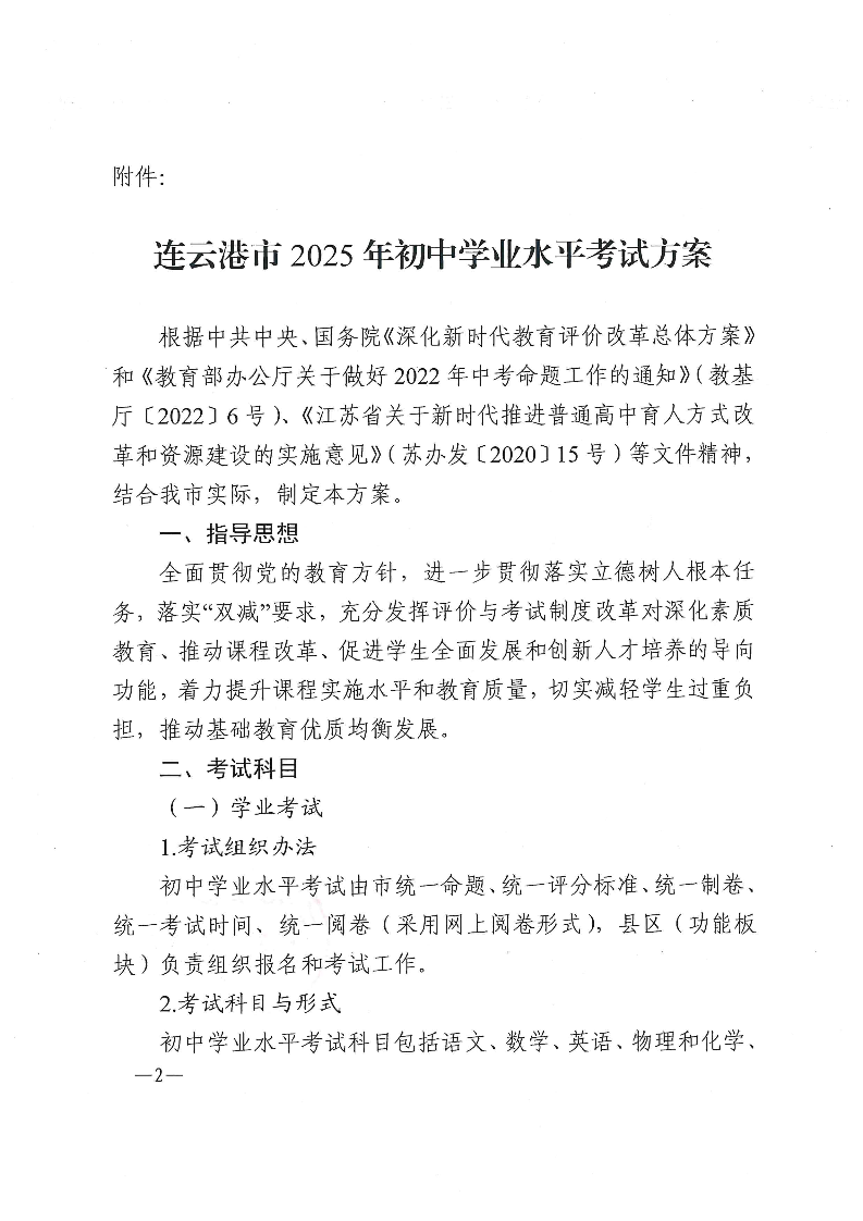 忧考网从连云港市教育局获悉,2025年江苏连云港初中学业水平考试方案已公布,具体详情如下: