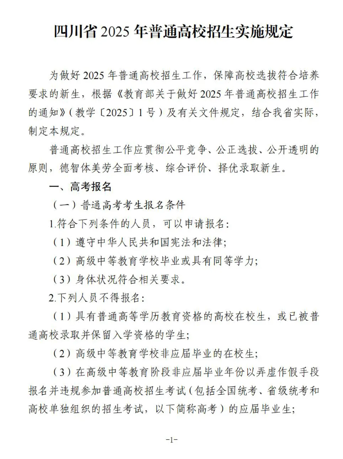 从四川教育发布公众号了解到,四川省2025年普通高校招生实施规定出炉,相关事宜详情如下: