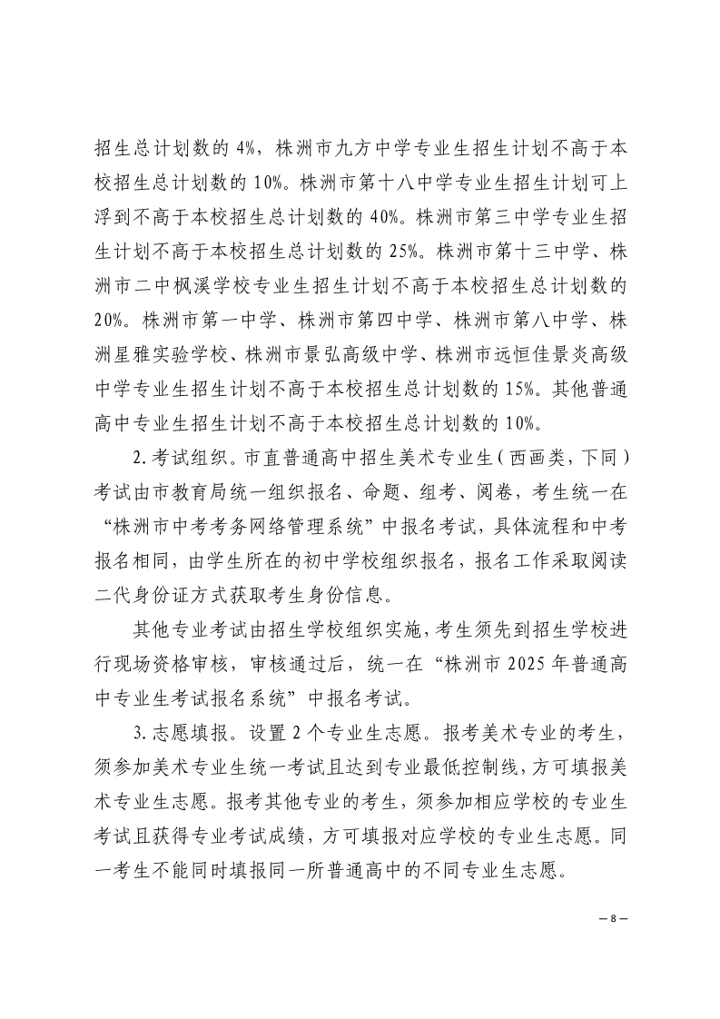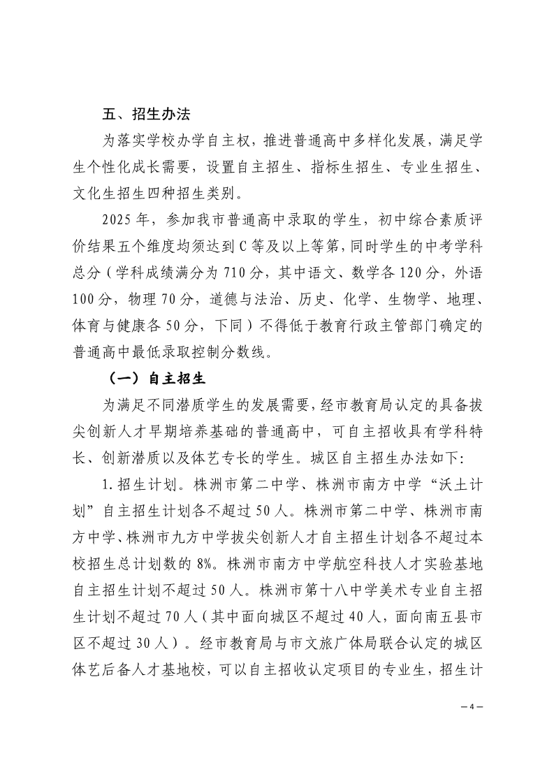 无忧考网从株洲市教育局获悉,2025年湖南株洲普通高中招生实施方案已公布,具体详情如下: