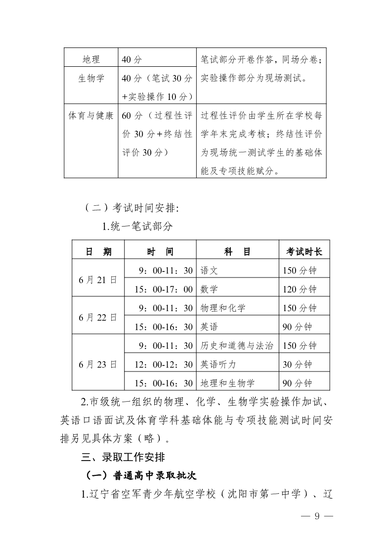 辽宁沈阳中考时间2025年具体时间表、考试科目、各