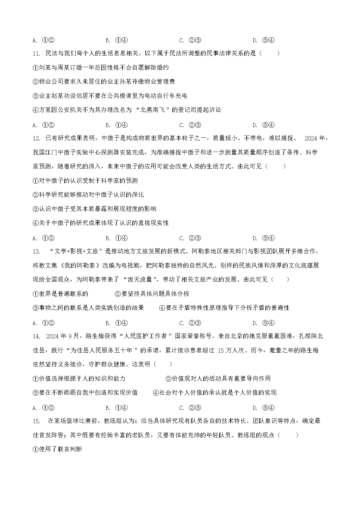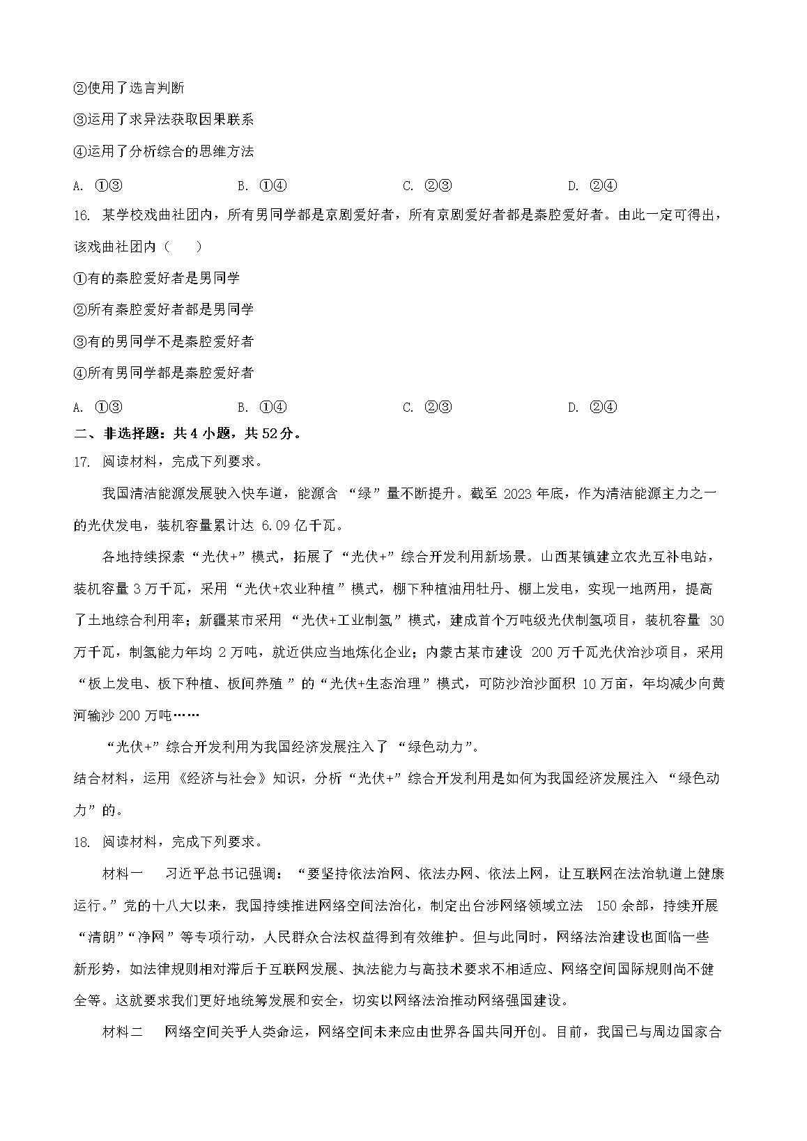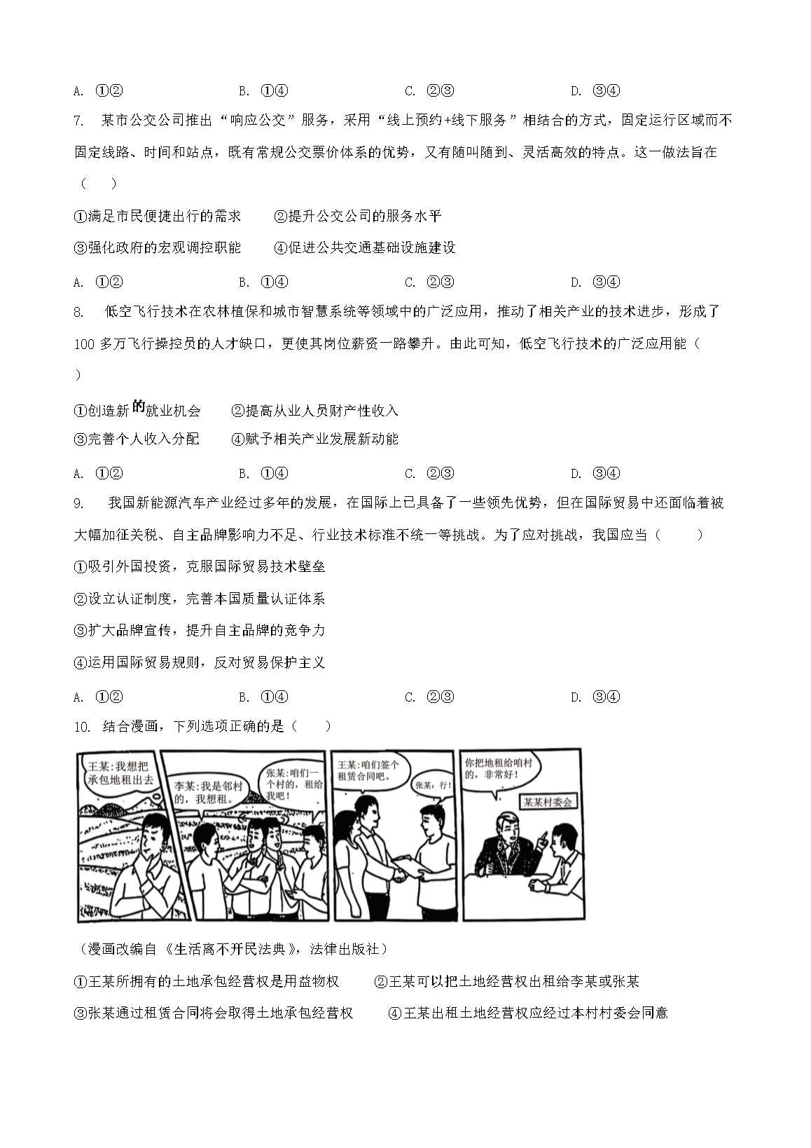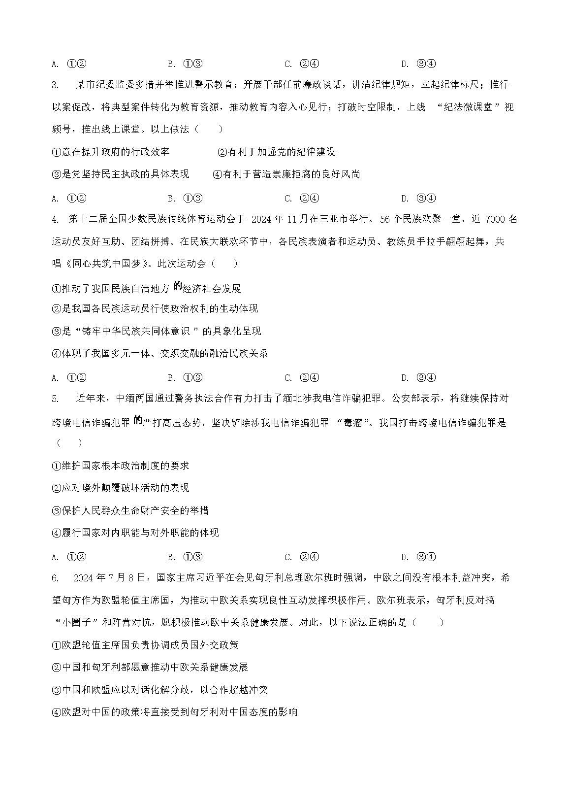 【文档名称】 2025年1月宁夏高考适应性测试政治试题及答案(Word版).doc