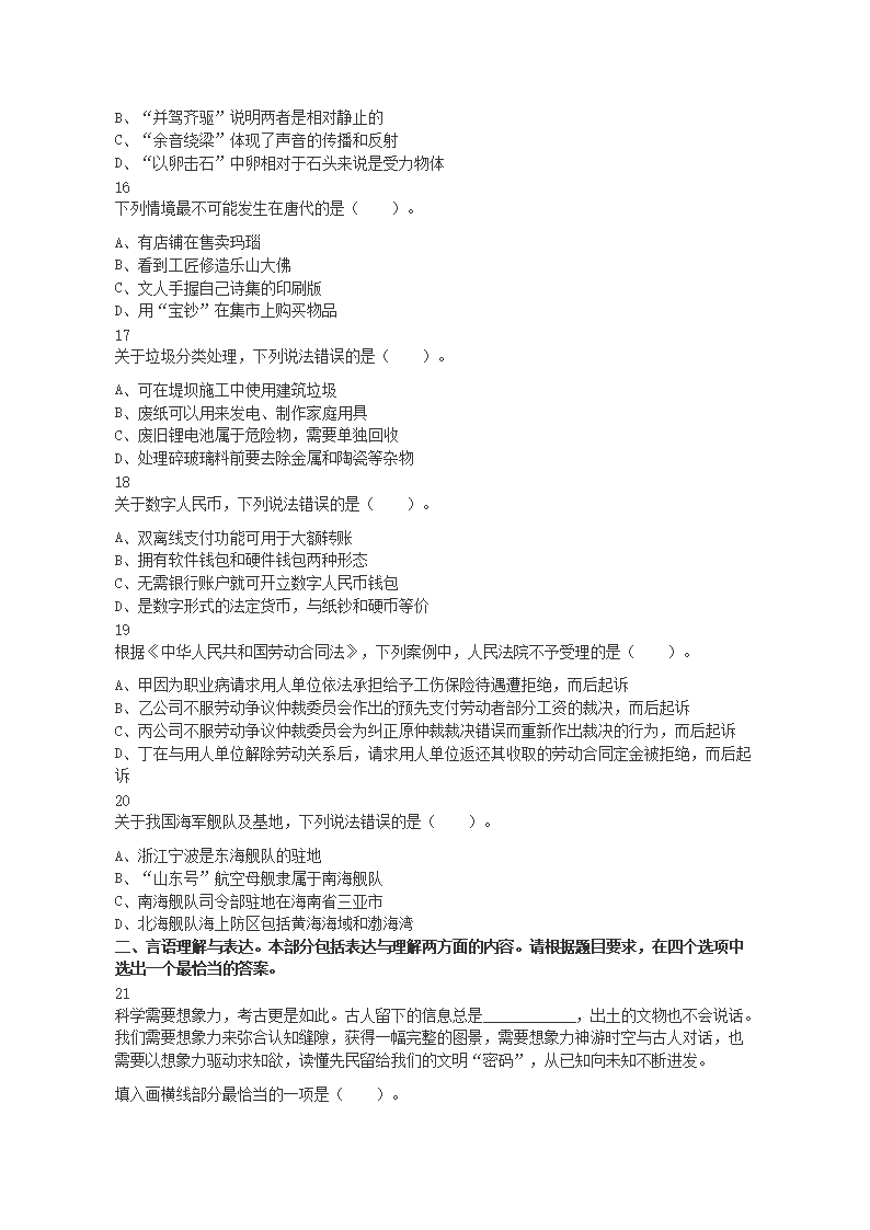 【文档预览】 无忧考网整理发布2022年上半年全国事业单位联考D类职业能力倾向测验真题及答案(教师岗)(Word版),前五页预览如下: