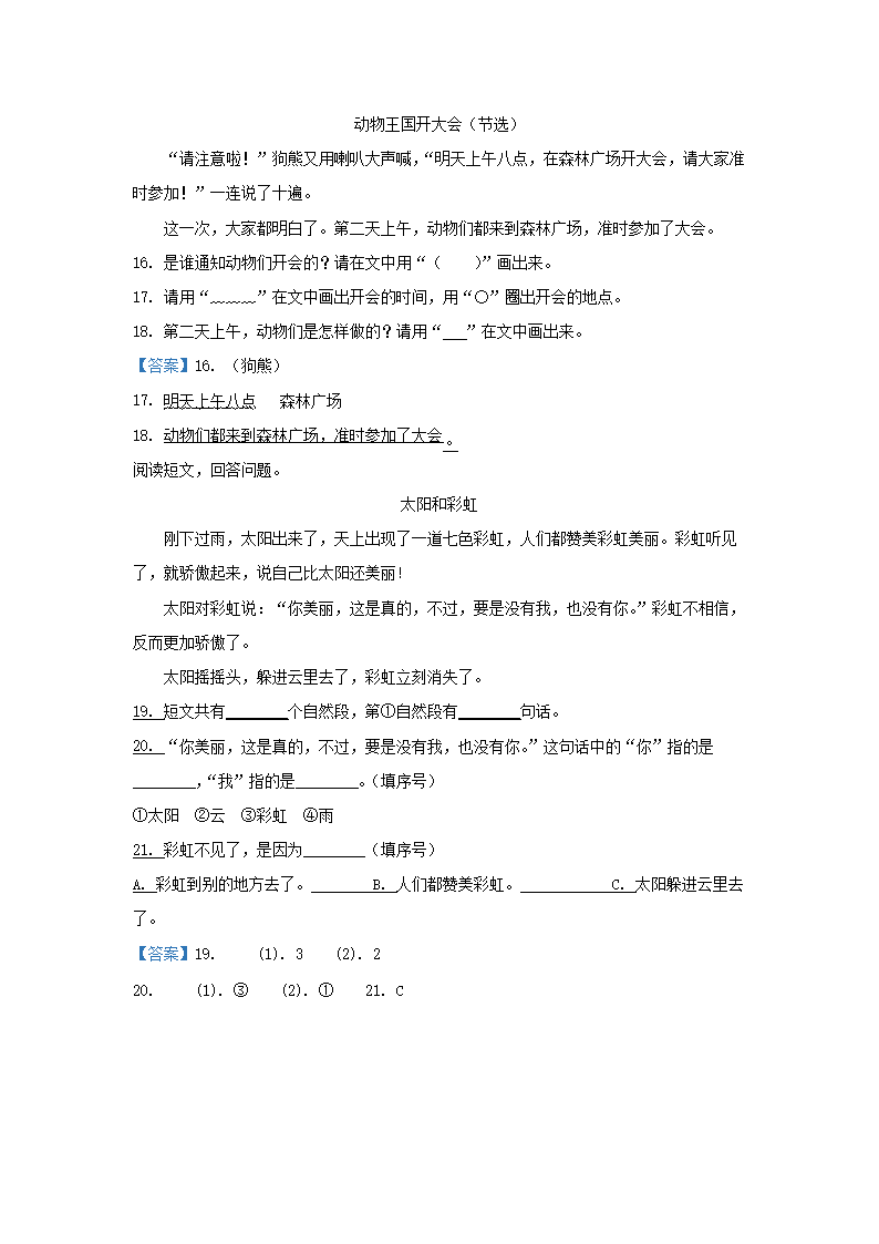 【文档预览】 无忧考网整理发布2018-2019学年北京市房山区小学一年级下册语文期末试题及答案(Word版),前五页预览如下:
