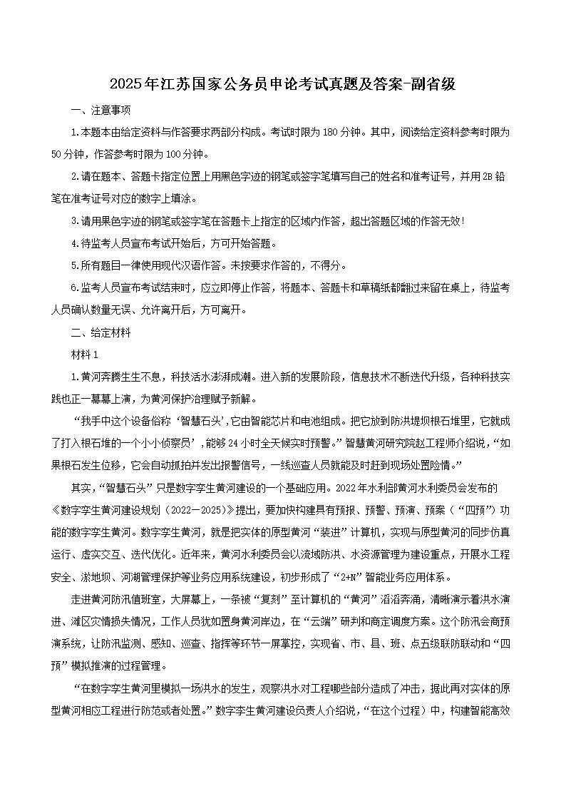 【文档预览】 无忧考网整理发布2025年江苏国家公务员申论考试真题及答案-副省级(Word版),前五页预览如下: