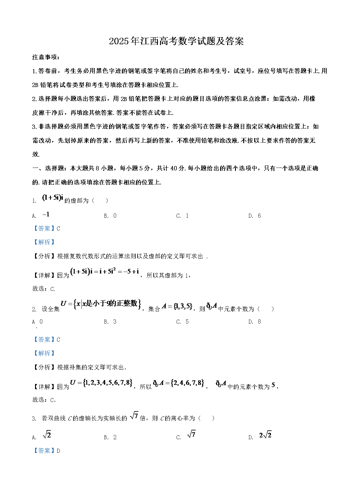 【文档名称】 2025年江西高考数学试题及答案(Word版).doc