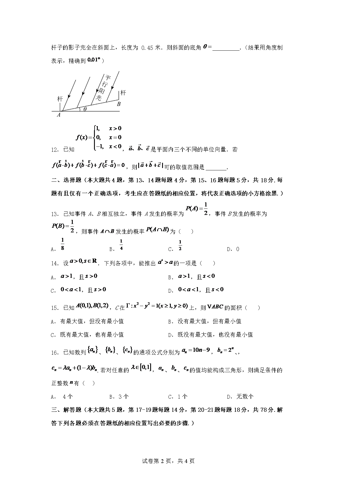 【文档名称】 2025年上海高考数学试题及答案(Word版).doc