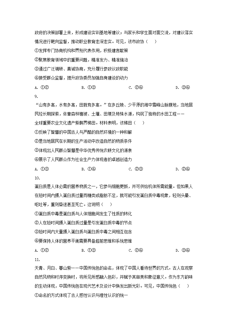 【文档名称】 2025年吉林学考选择性考试政治真题及答案(Word版).doc
