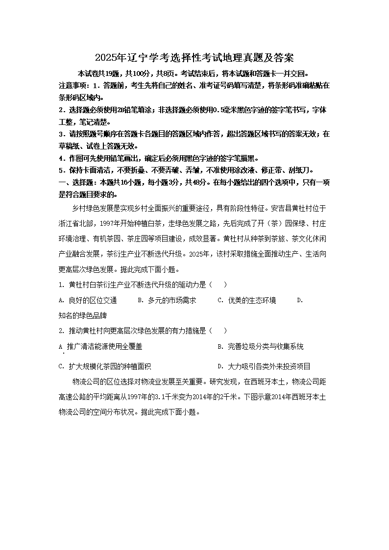 【文档预览】 无忧考网整理发布2025年辽宁学考选择性考试地理真题及答案(Word版),前五页预览如下: