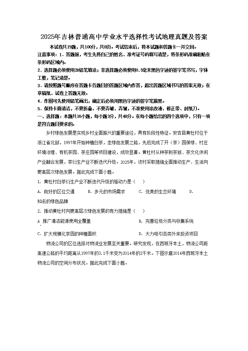 【文档预览】 无忧考网整理发布2025年吉林普通高中学业水平选择性考试地理真题及答案(Word版),前五页预览如下: