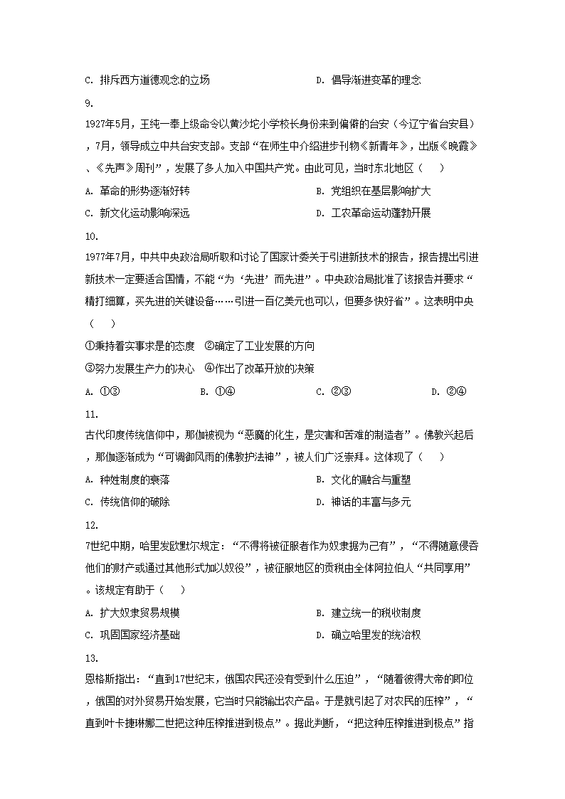 【文档名称】 2025年吉林普通高中学业水平选择性考试历史真题及答案(Word版).doc