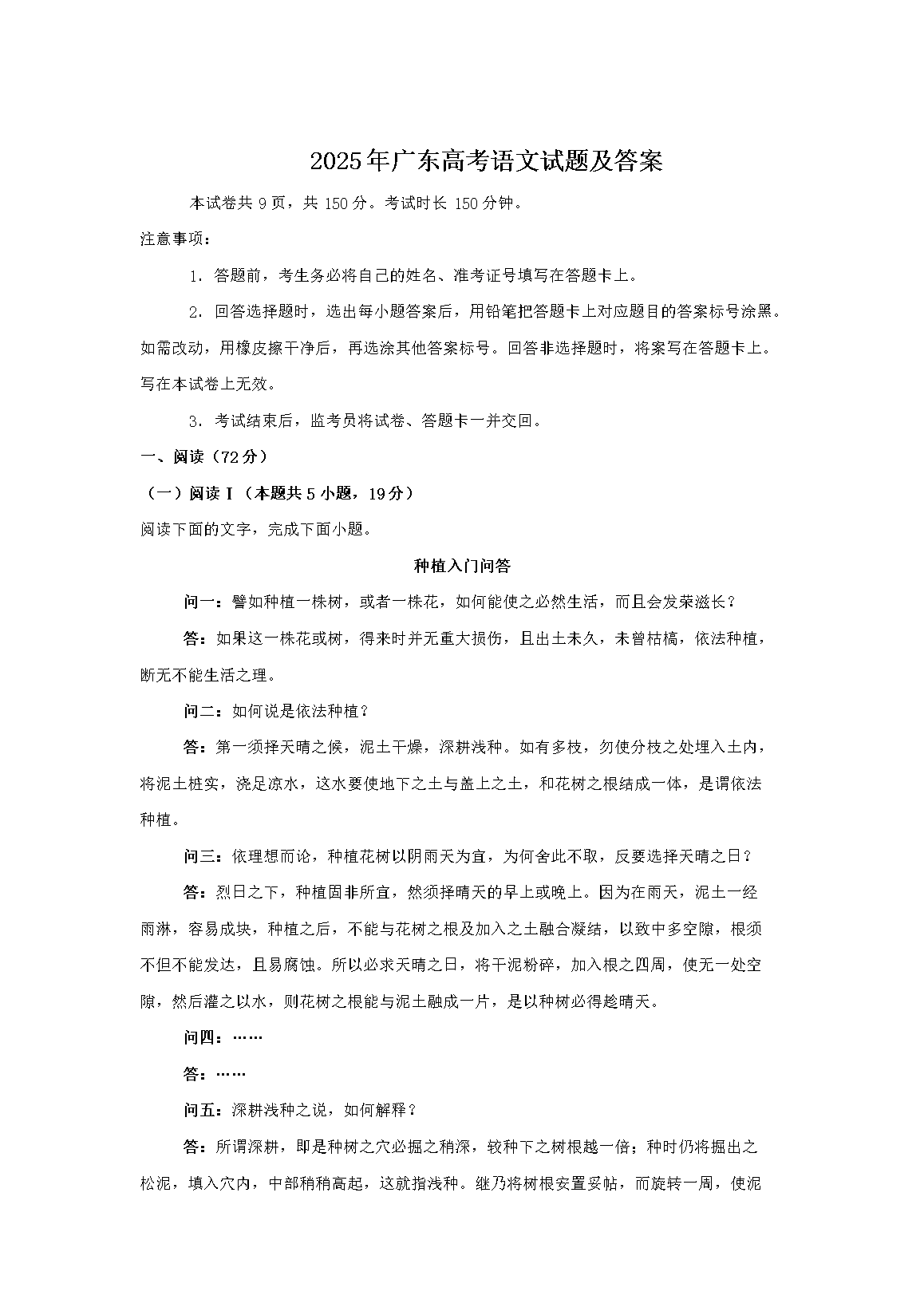 【文档预览】 无忧考网整理发布2025年广东高考语文试题及答案(Word版),前五页预览如下: