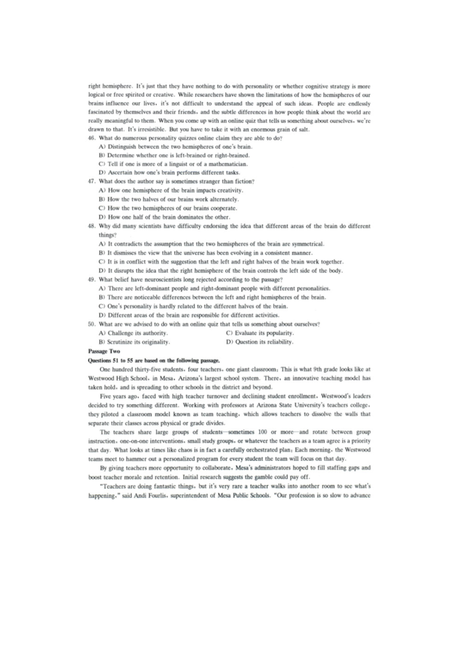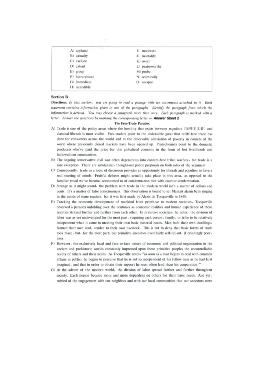 【文档预览】 无忧考网整理发布2024年12月英语六级真题及答案-第3套(图片版),前五页预览如下: