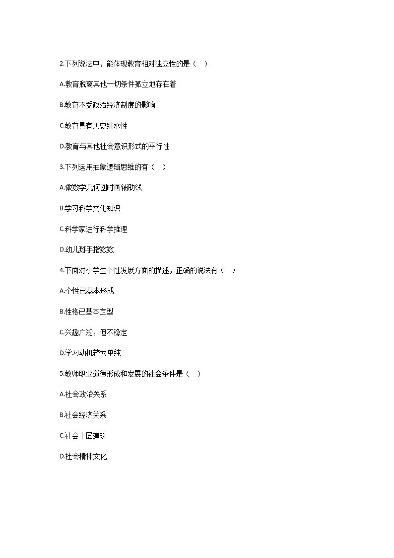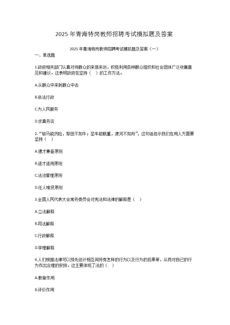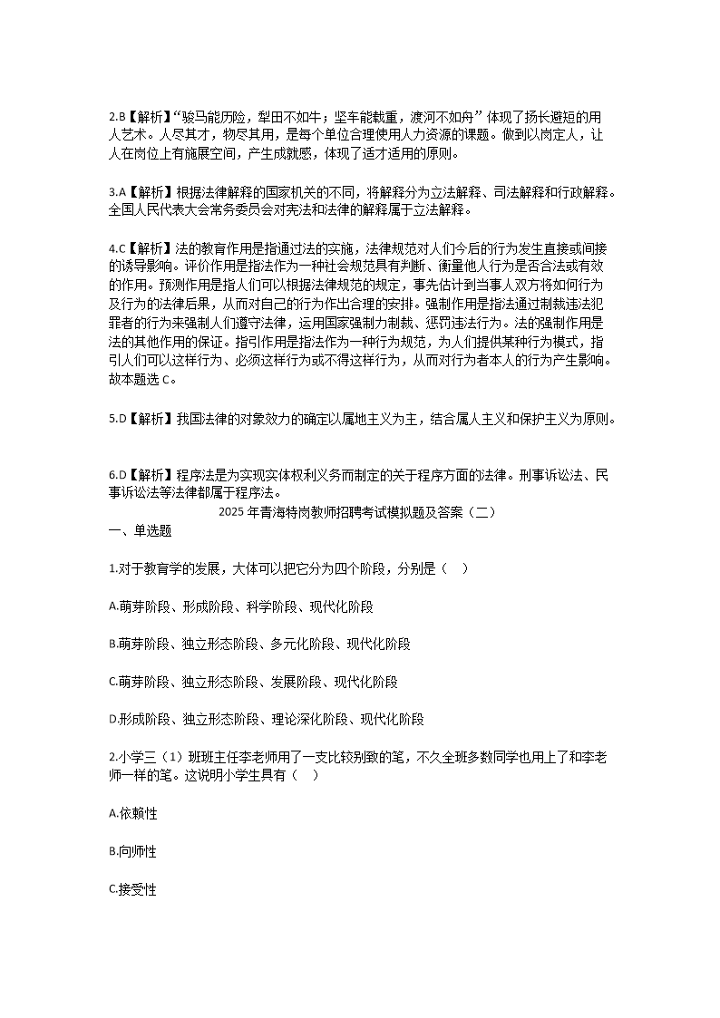 【文档名称】 2025年青海特岗教师招聘考试模拟题及答案(Word版).doc