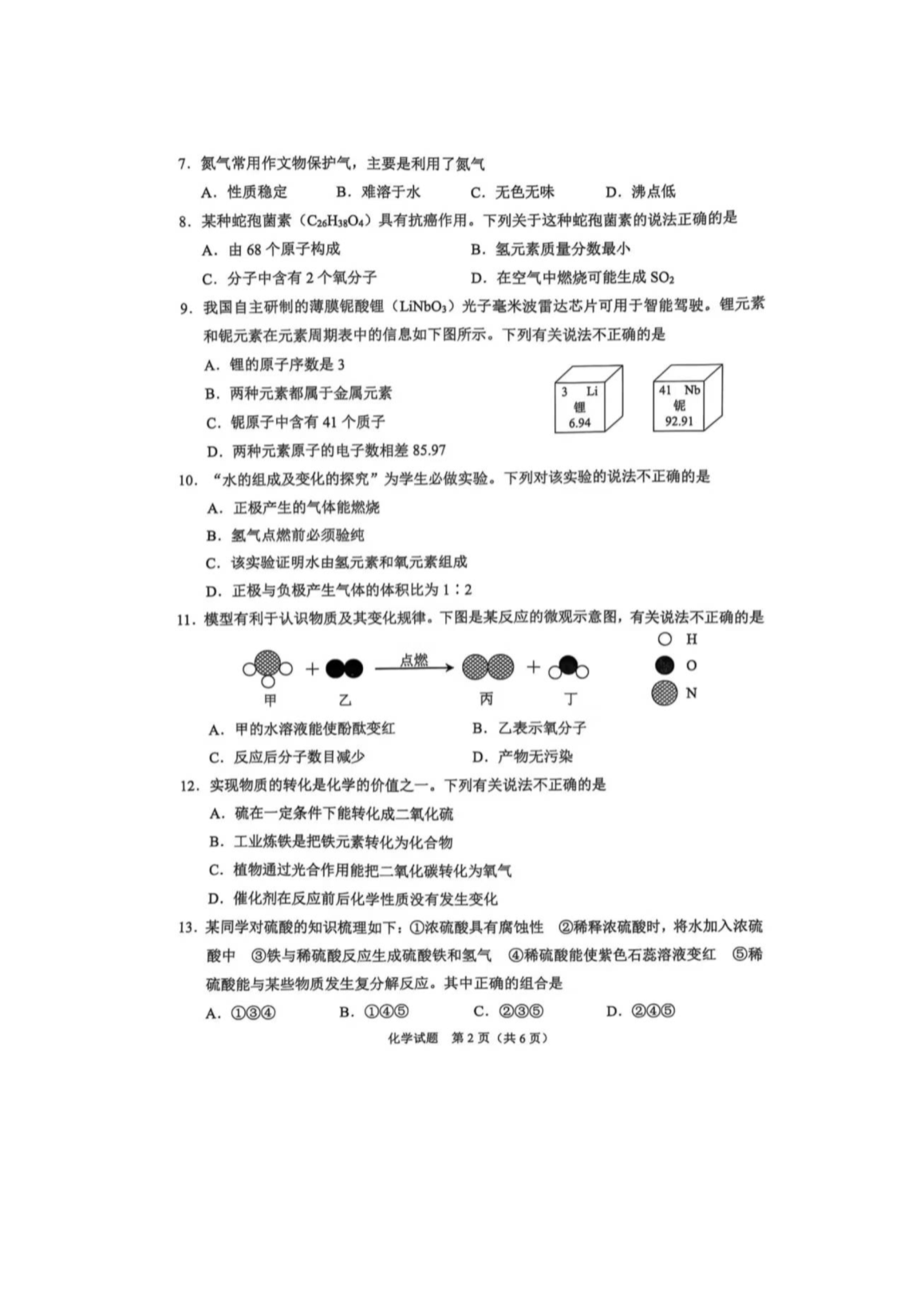 【文档名称】 2025年重庆黔江中考化学真题及答案(图片版).doc