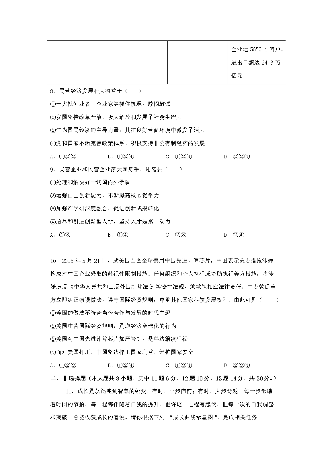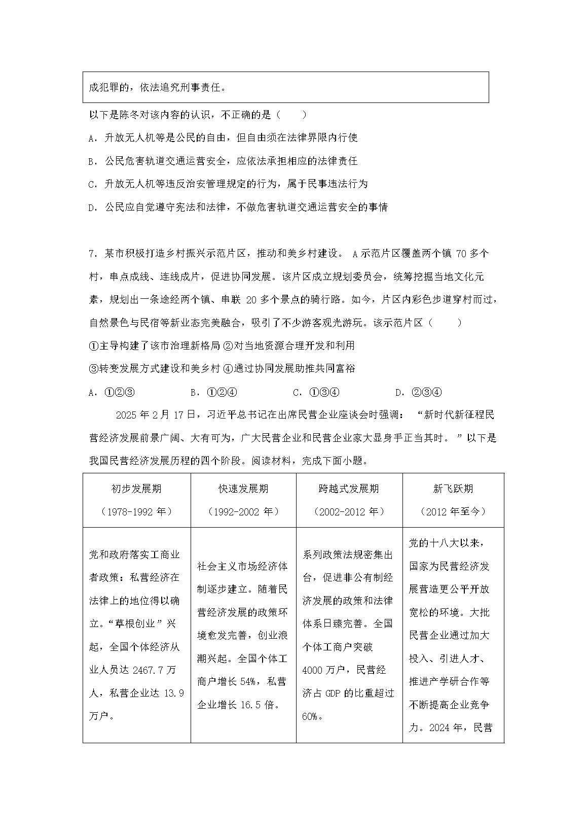 【文档名称】 2025年重庆万州中考道德与法治试题及答案(Word版).doc