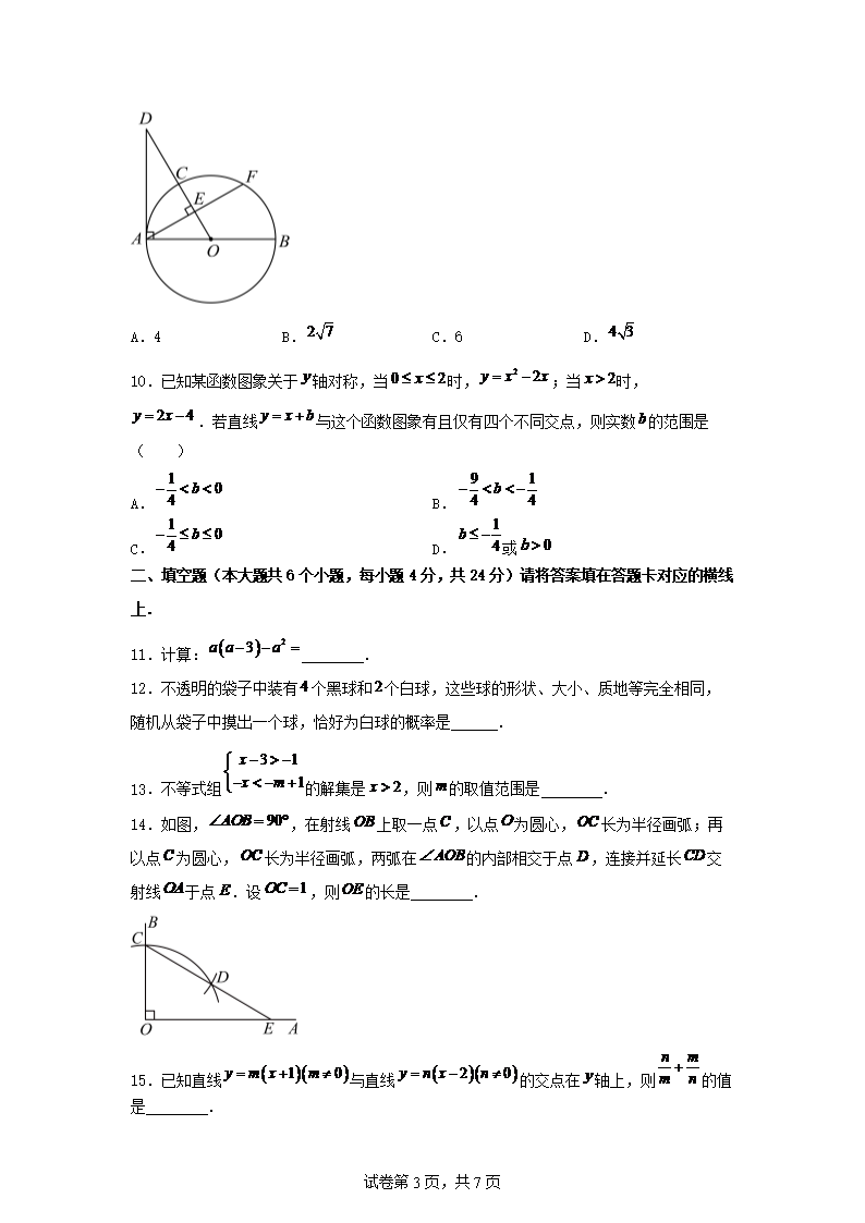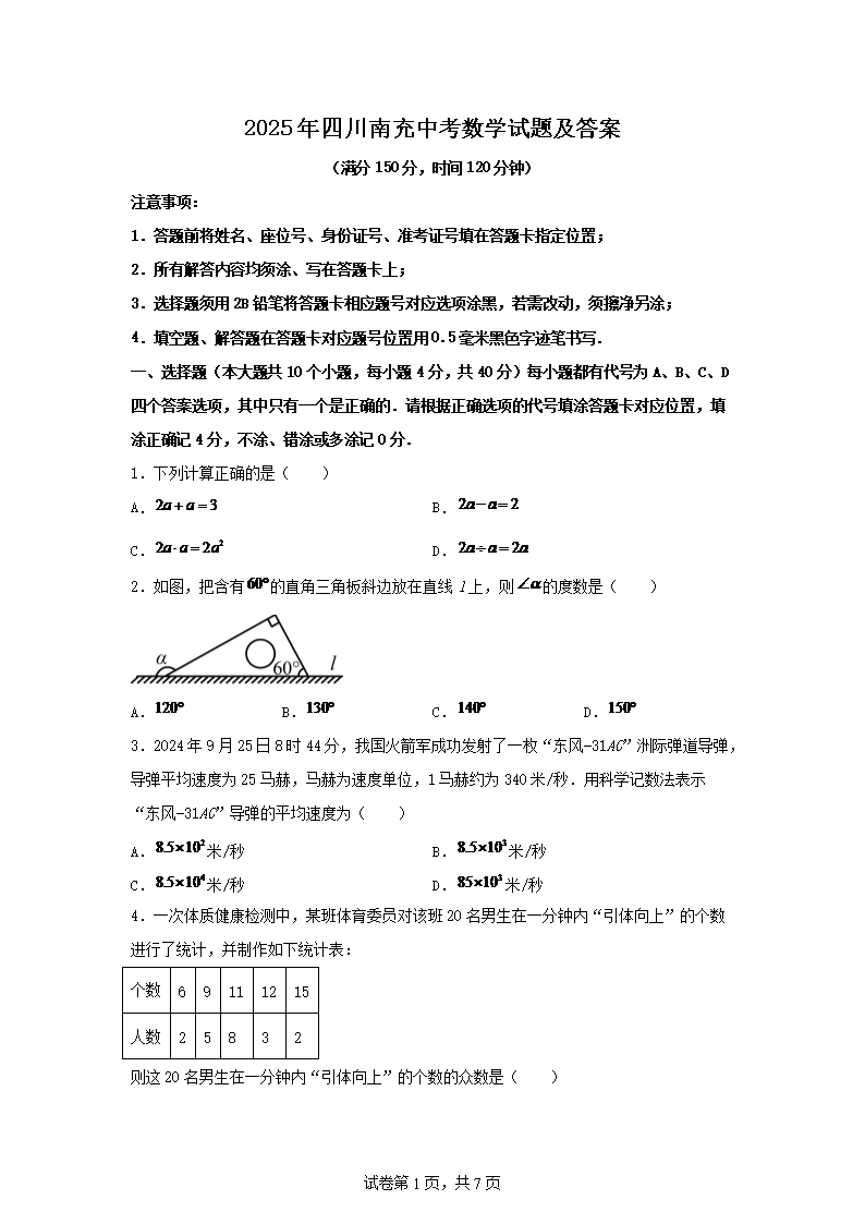 【文档名称】 2025年四川南充中考数学试题及答案(Word版).doc