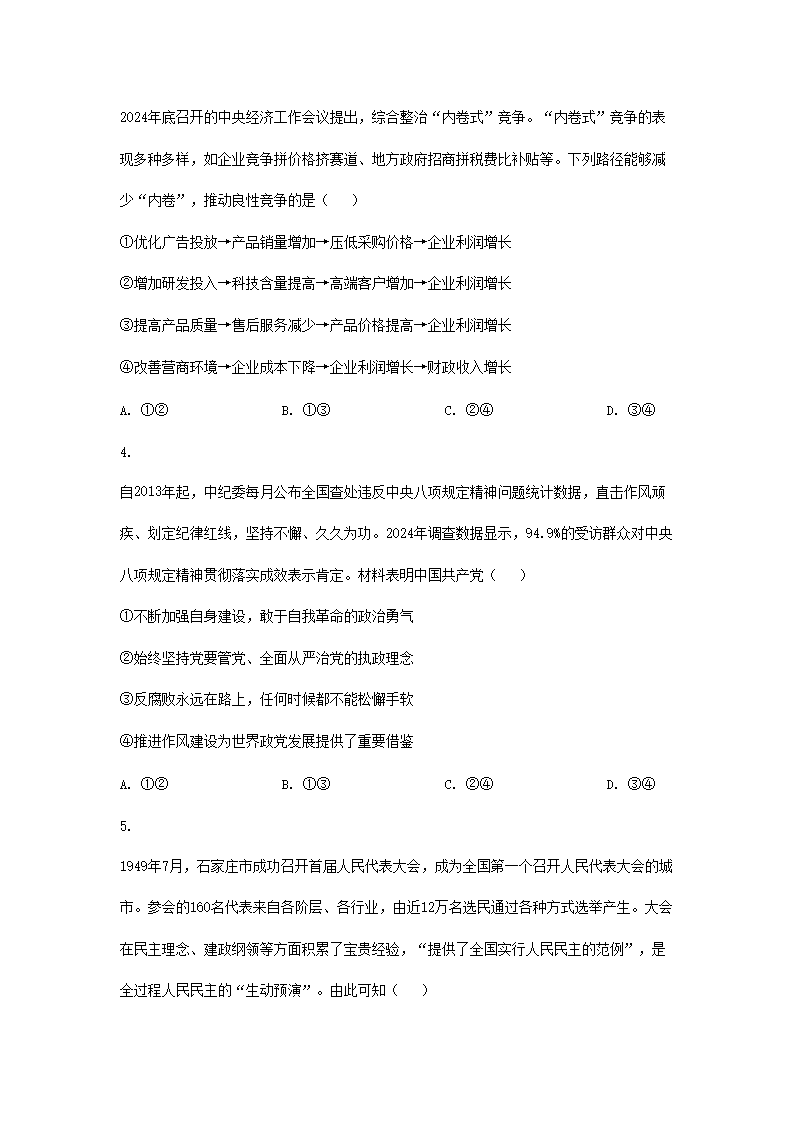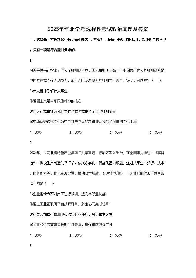 【文档预览】 无忧考网整理发布2025年河北学考选择性考试政治真题及答案(Word版),前五页预览如下: