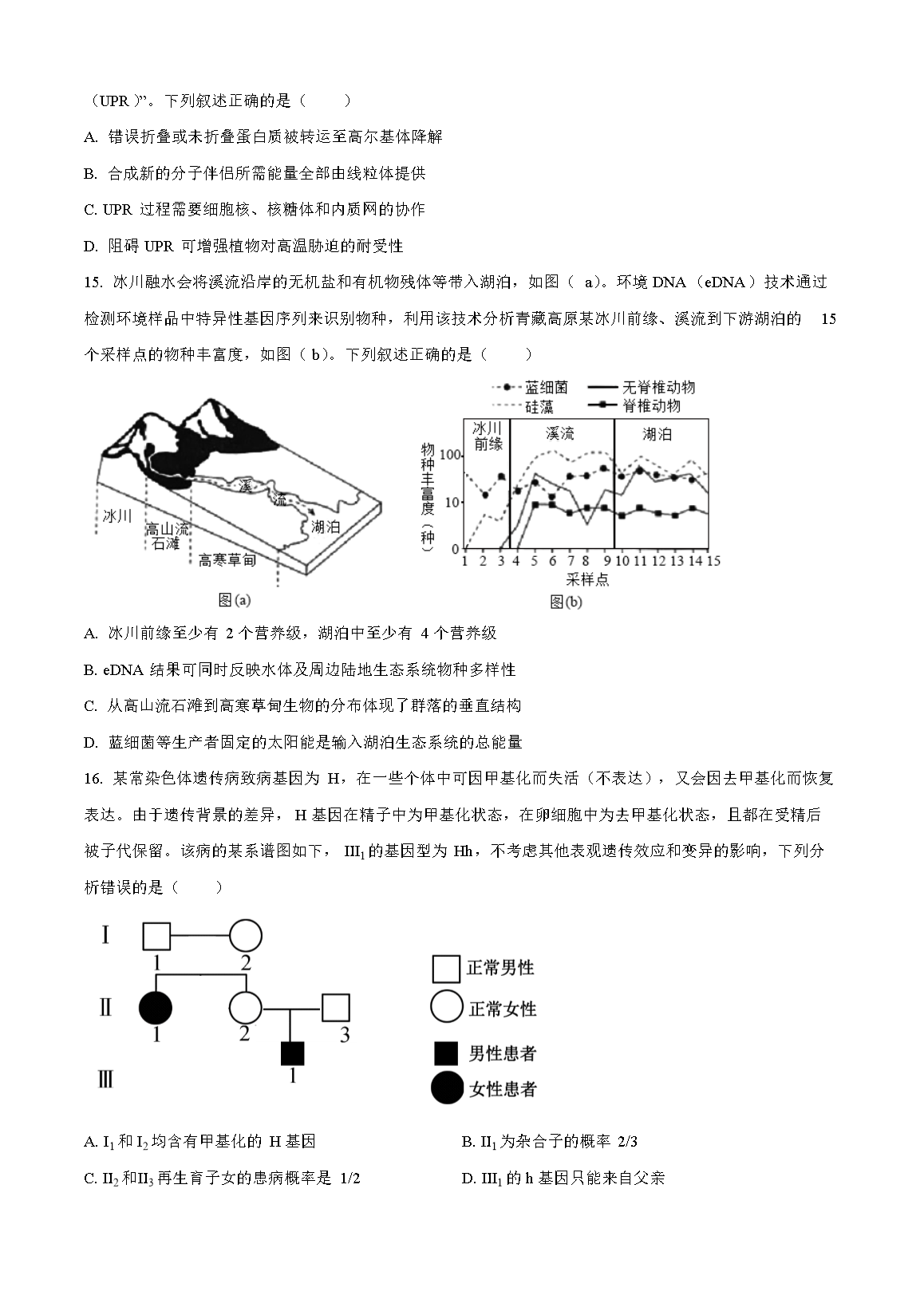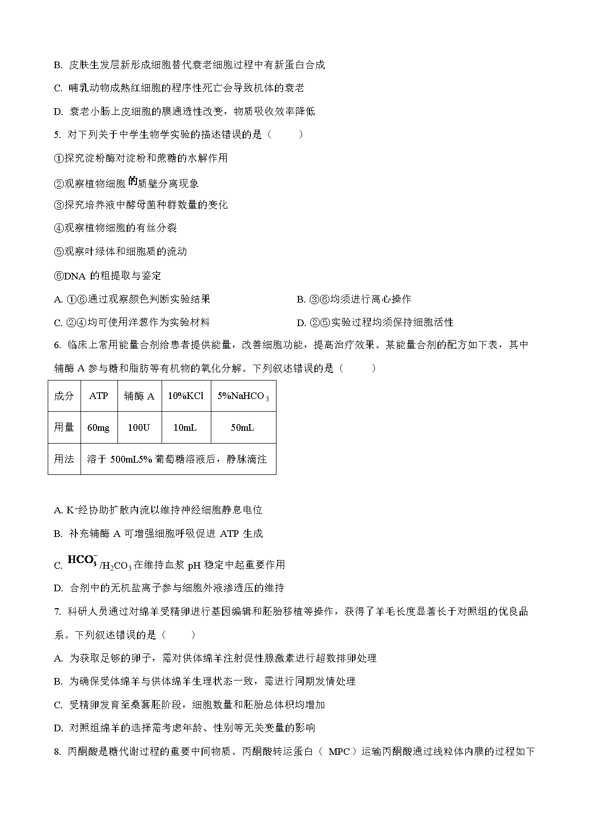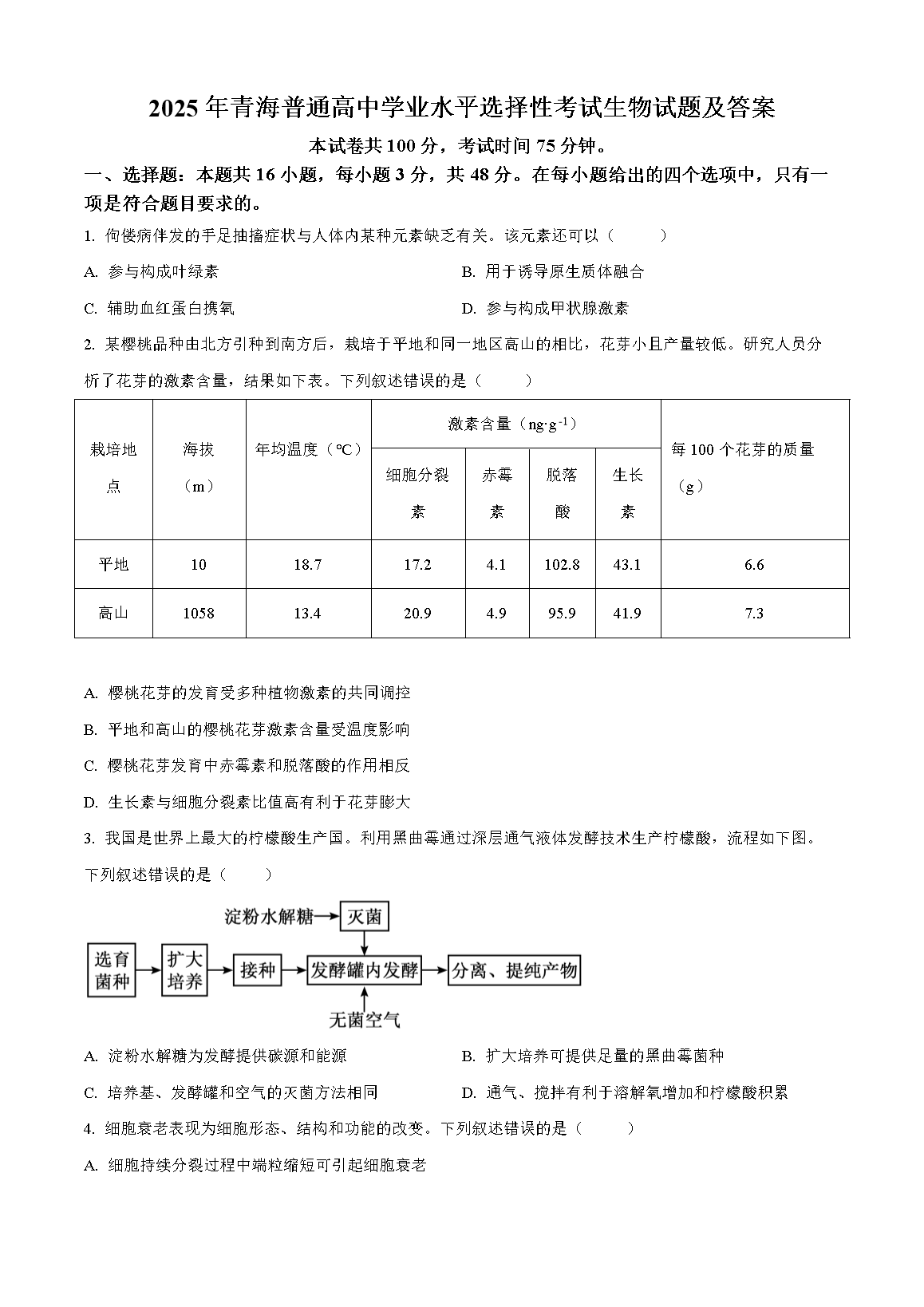 【文档名称】 2025年青海普通高中学业水平选择性考试生物试题及答案(Word版).doc